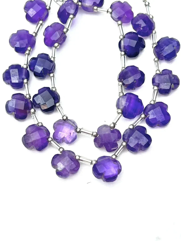 Amethyst Faceted 4 Petal Flowers Approx 10mm 12 Pieces