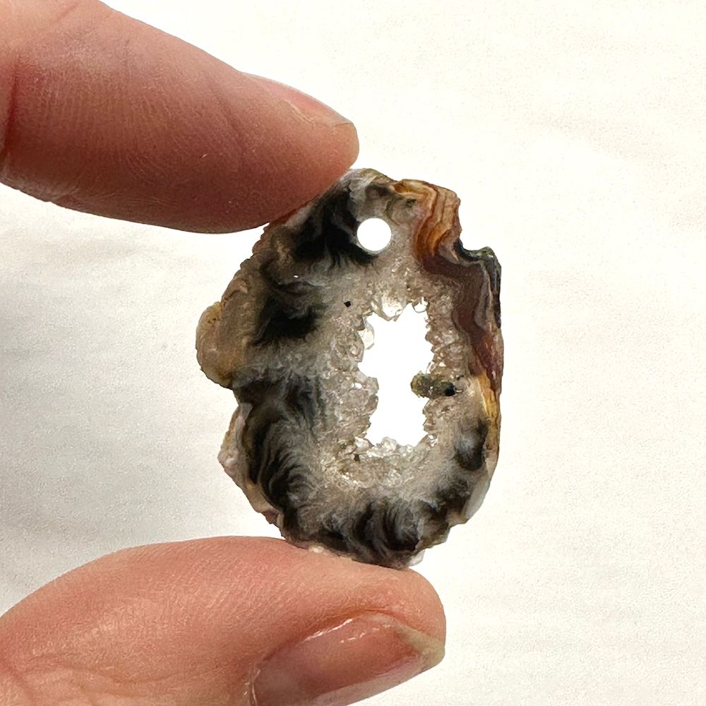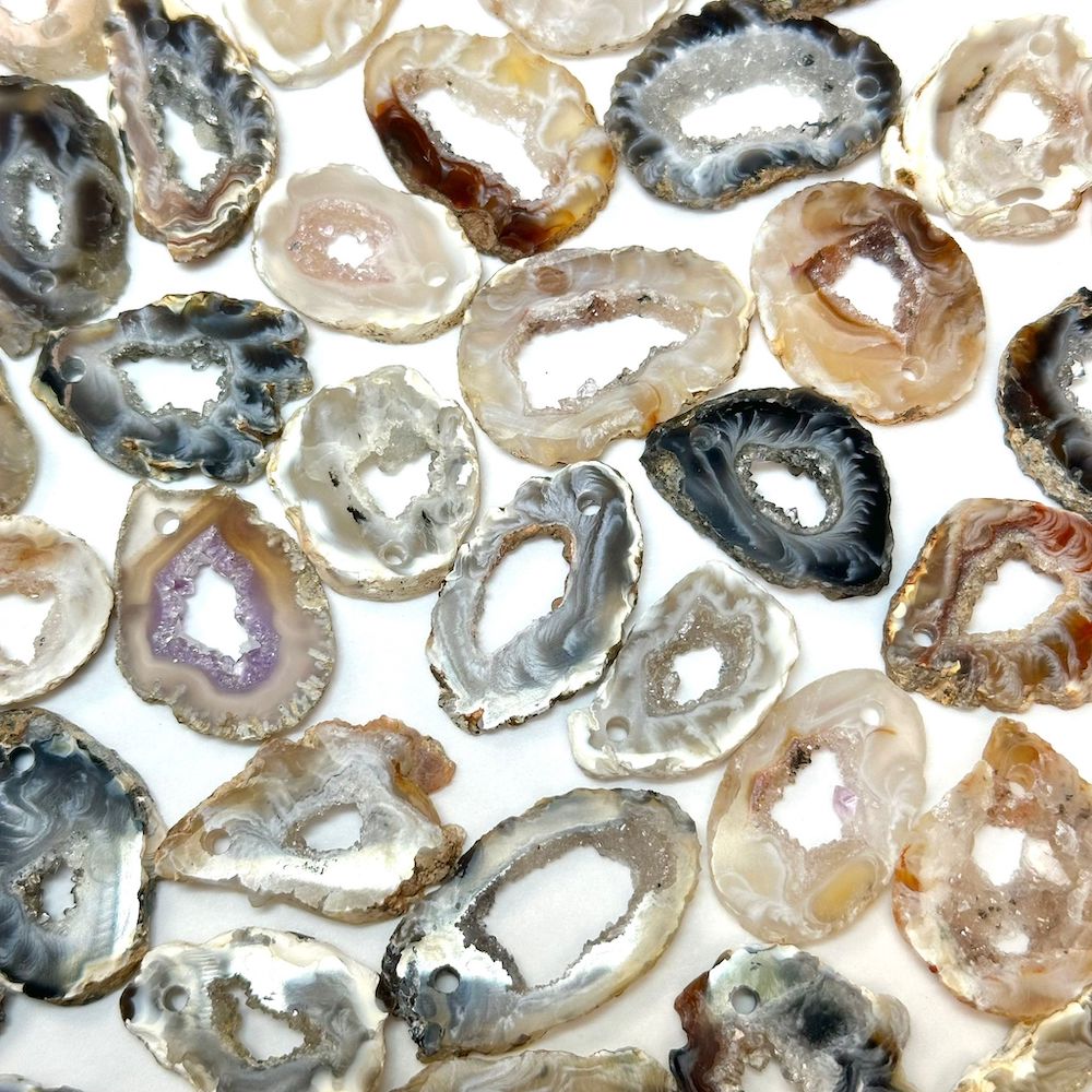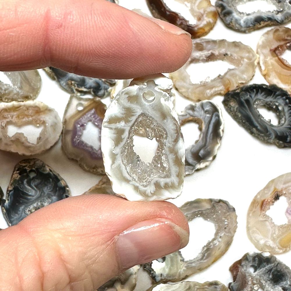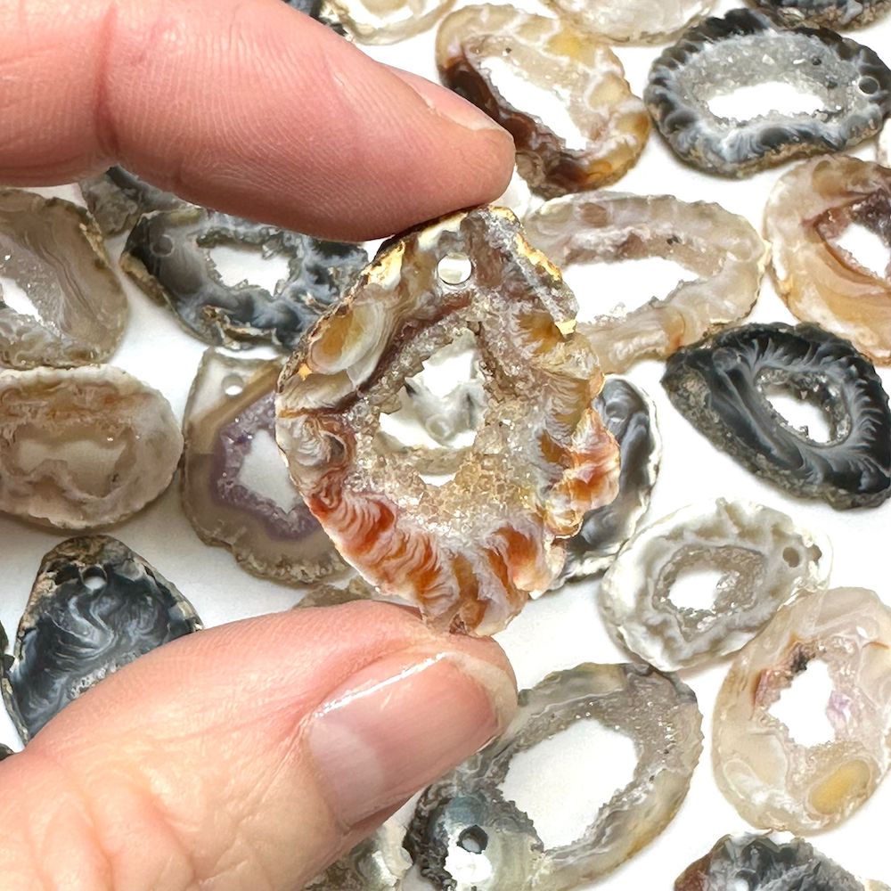 Agate Druzy Slice Approx 2 – 3.5cm Top Drilled with 2mm Drill Hole 2pcs