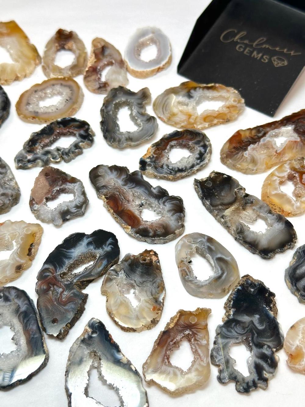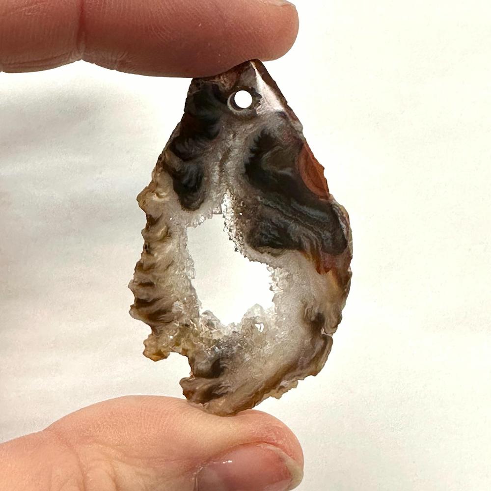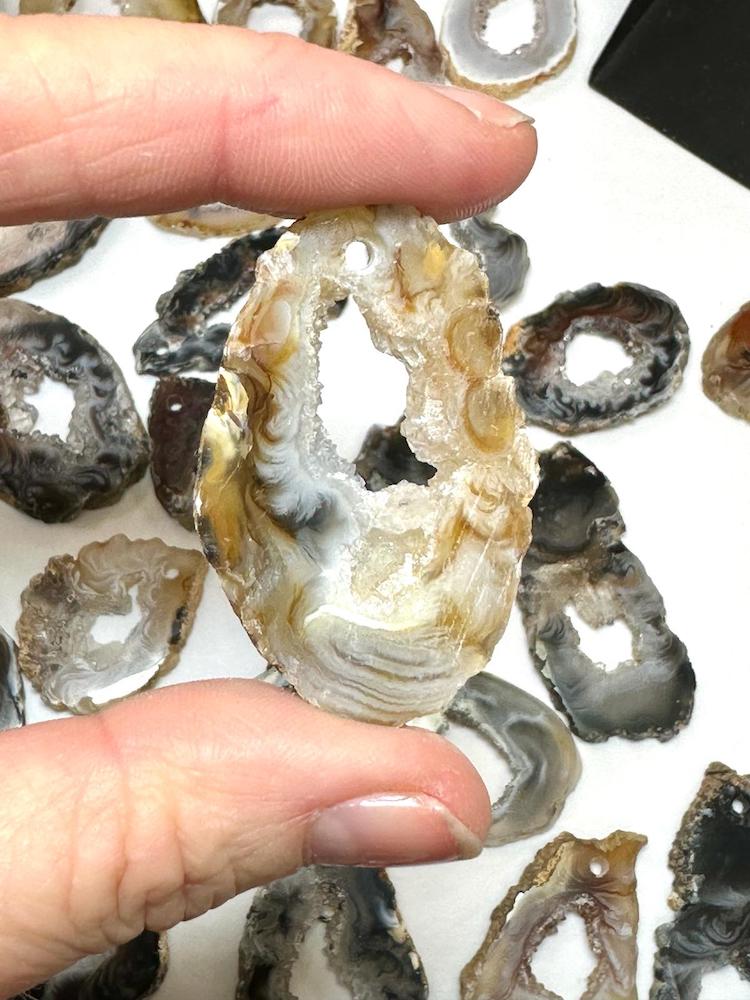 Agate Druzy Slice Approx 3 – 5cm Top Drilled with 2mm Drill Hole 2pcs