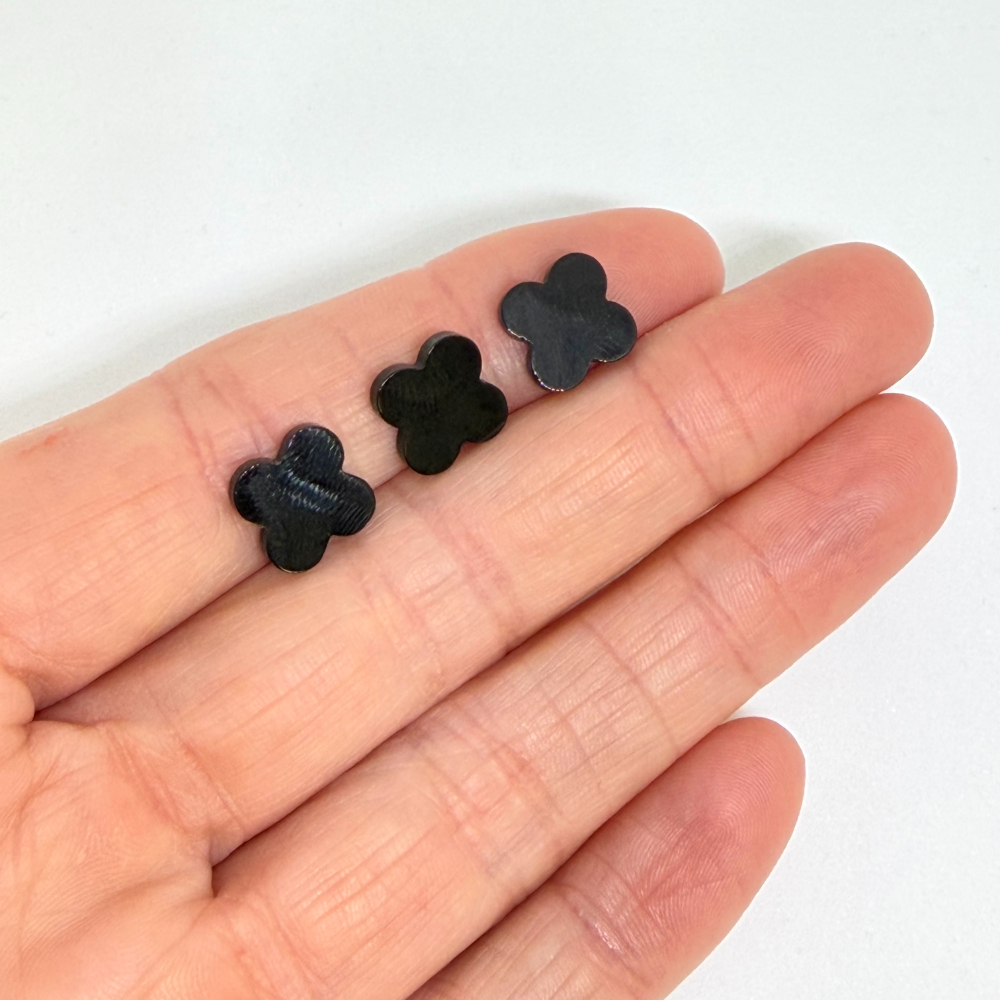 12 x 12 x 2mm Agate Black (dyed) – Flat Quatrefoil 3pc Pack