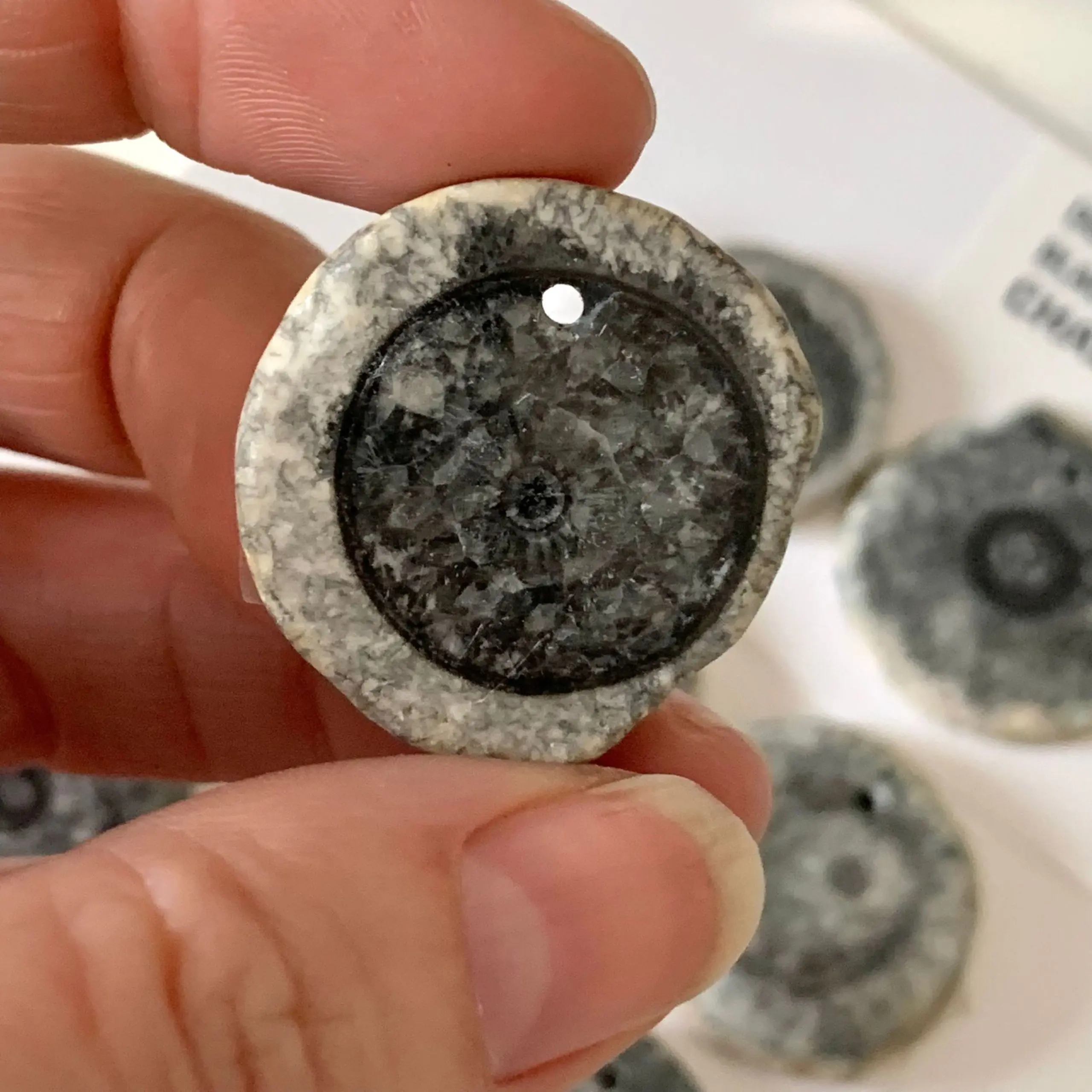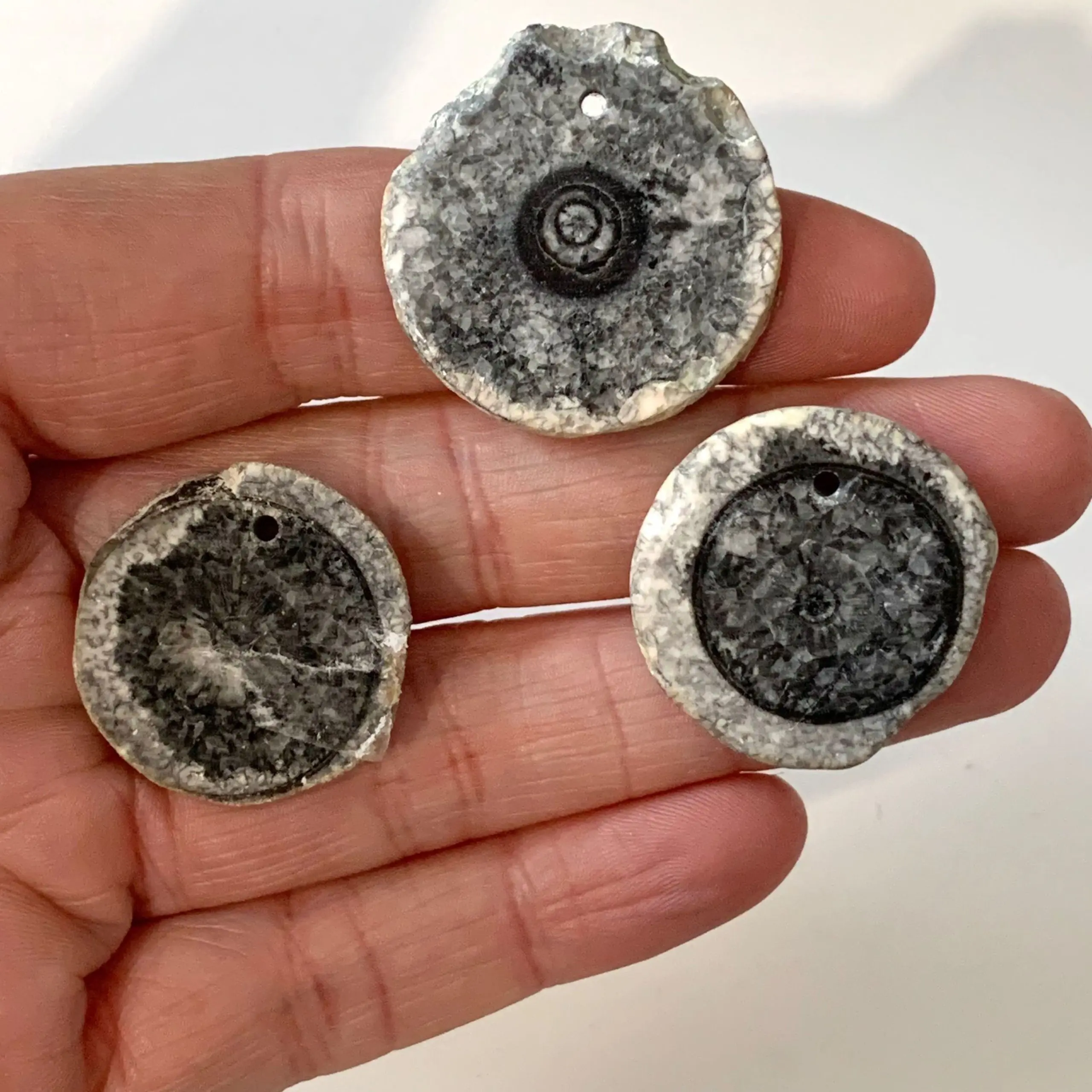 Black Fossil Coral Slices 3pcs Drilled Approx 2-2.5cm