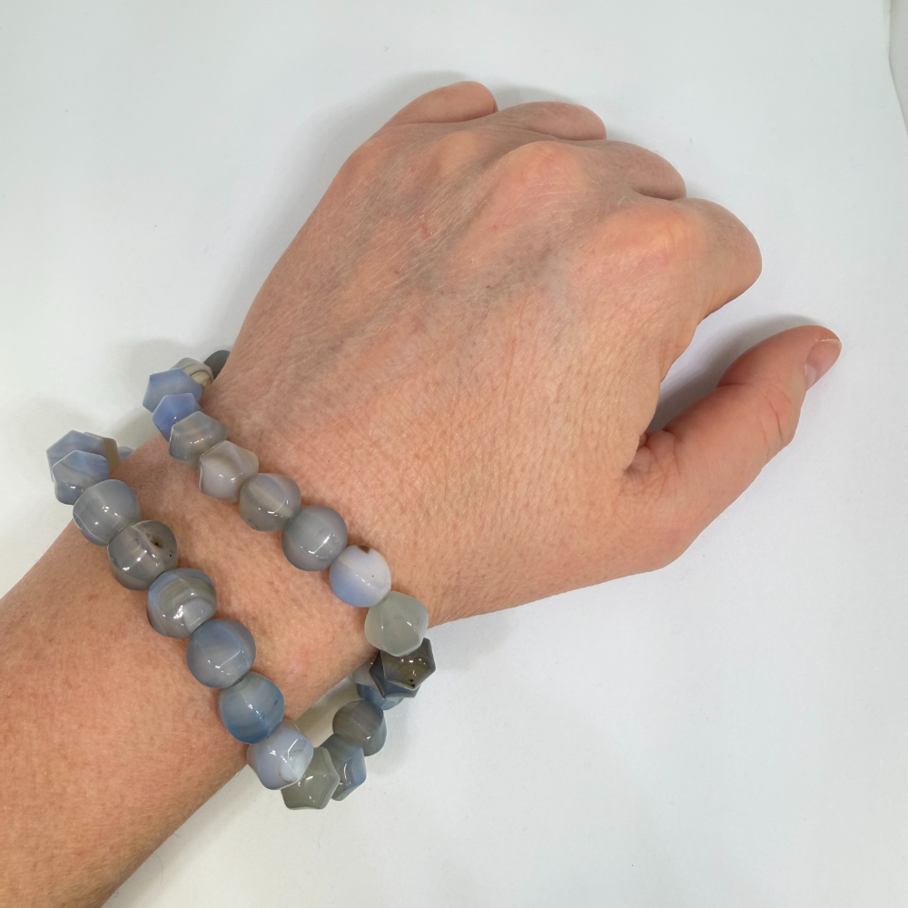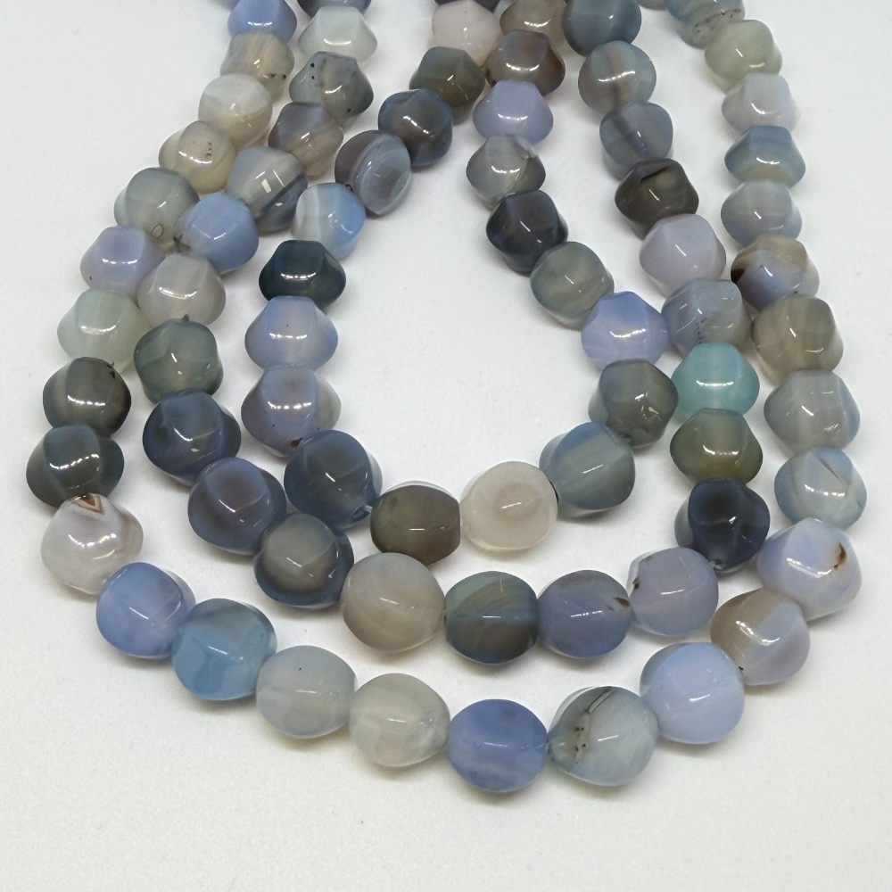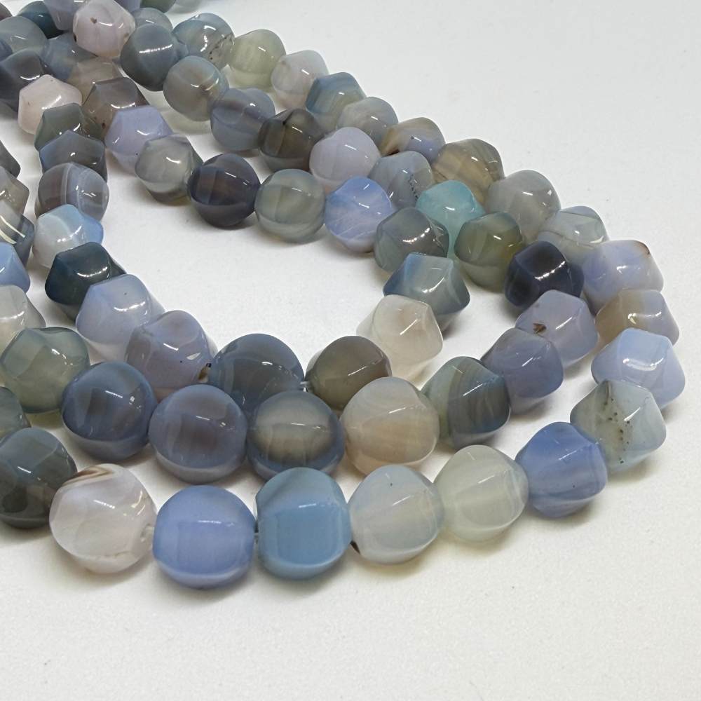10mm Agate Blue (dyed) Beads – Hexagonal Gemstone Strand (38cm)