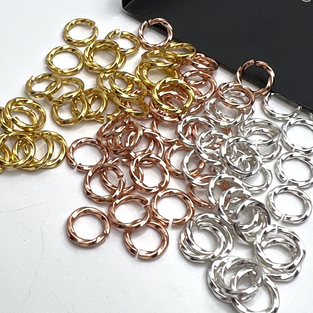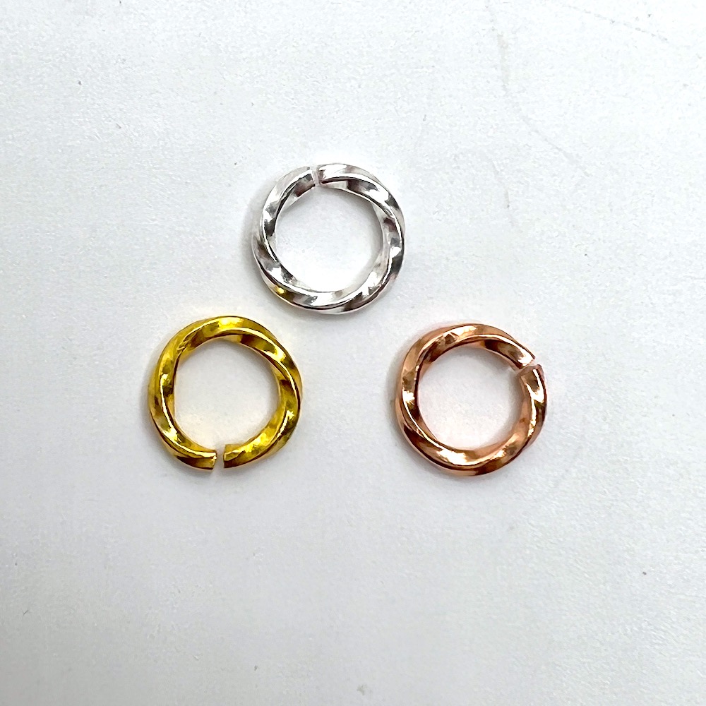 Swirl Finish Open Jump Ring 6mm Rose Gold, Gold & Silver Cooper Plated 25 Each Colour