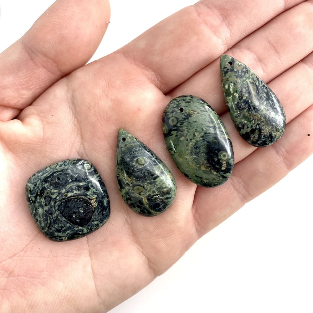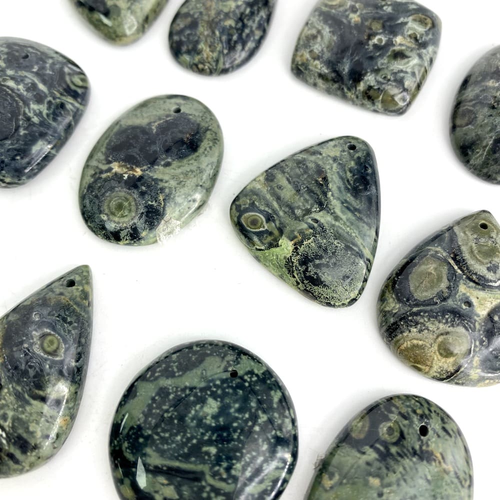 Did you know that Kambaba Jasper is also known as Star Galaxy Jasper and is also called Crocodile Jasper and Green Stromatolite?