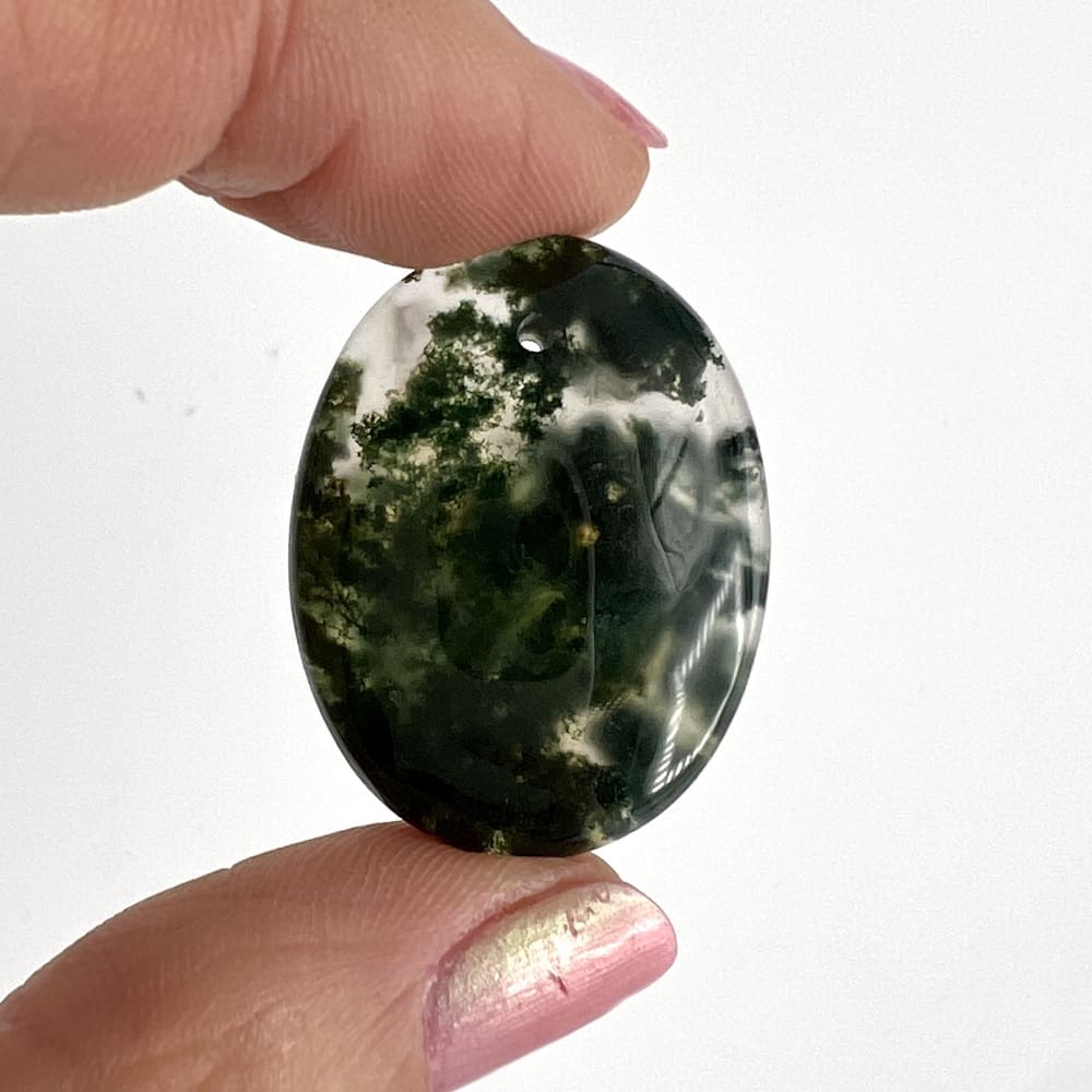 Our beautiful Moss Agate Top Drilled Cabochons are perfectly sized, measuring approximately 25 – 35mm with a 0.8mm Drill Hole.