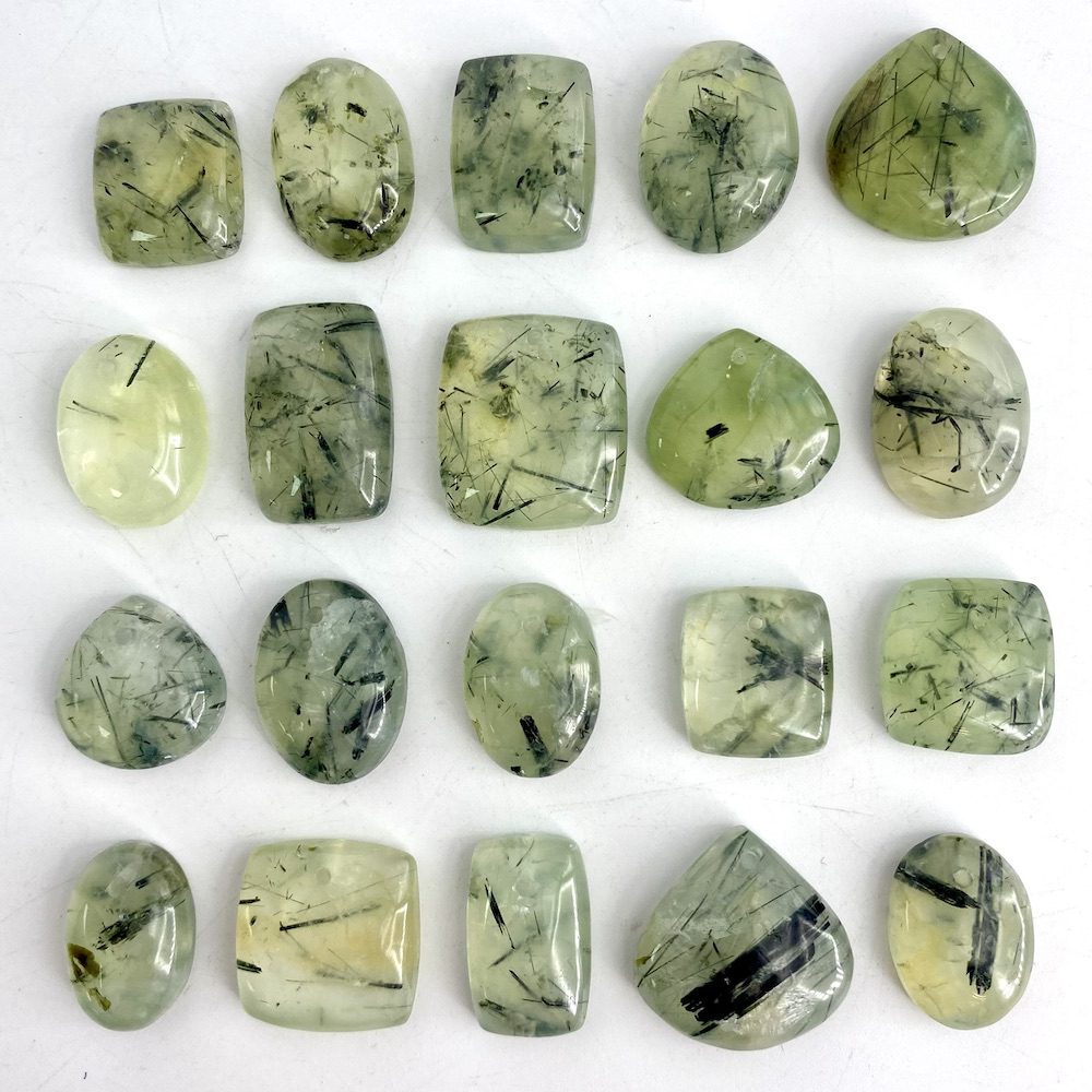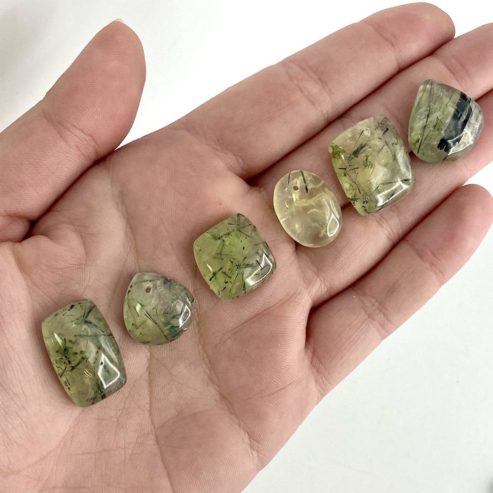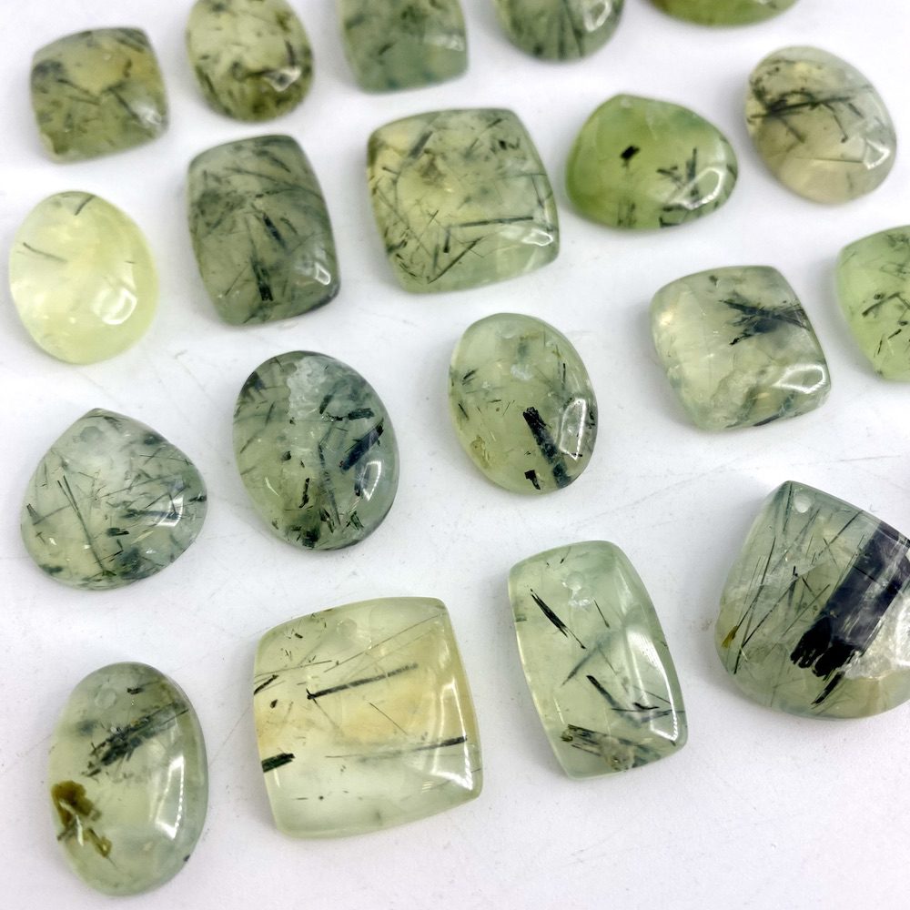 Prehnite Mixed Shape Top Drilled Cabochons Approx 15 – 25mm with 0.8mm Drill Hole 5 Piece Pack