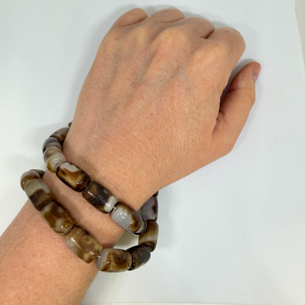 Coffee Coloured (dyed) Agate Smooth Drum Beads Approx 10 x 15mm 38cm Strand