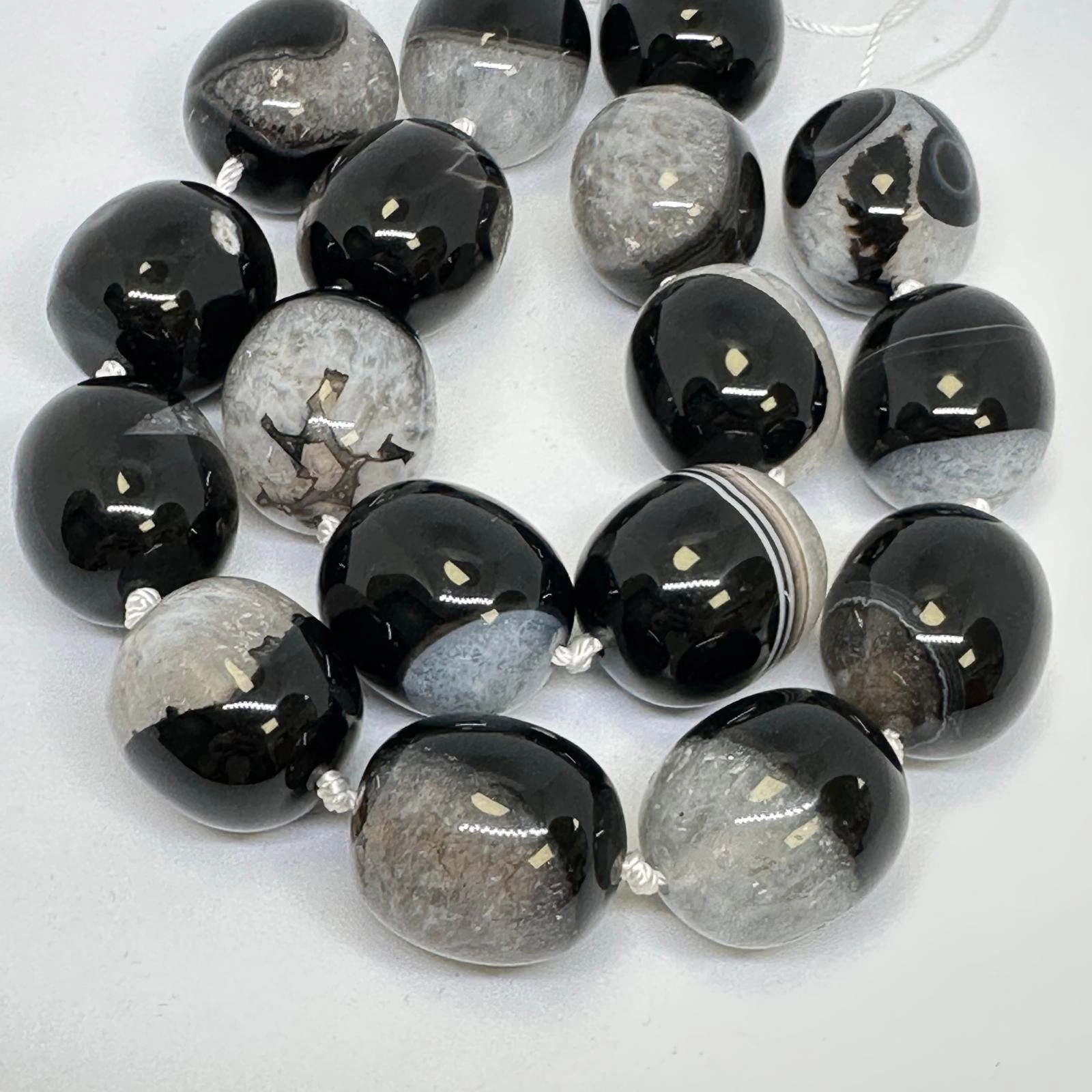 Dyed Agate Black/White Elongated Round Approx 20mm Beads Approx 21cm Strand