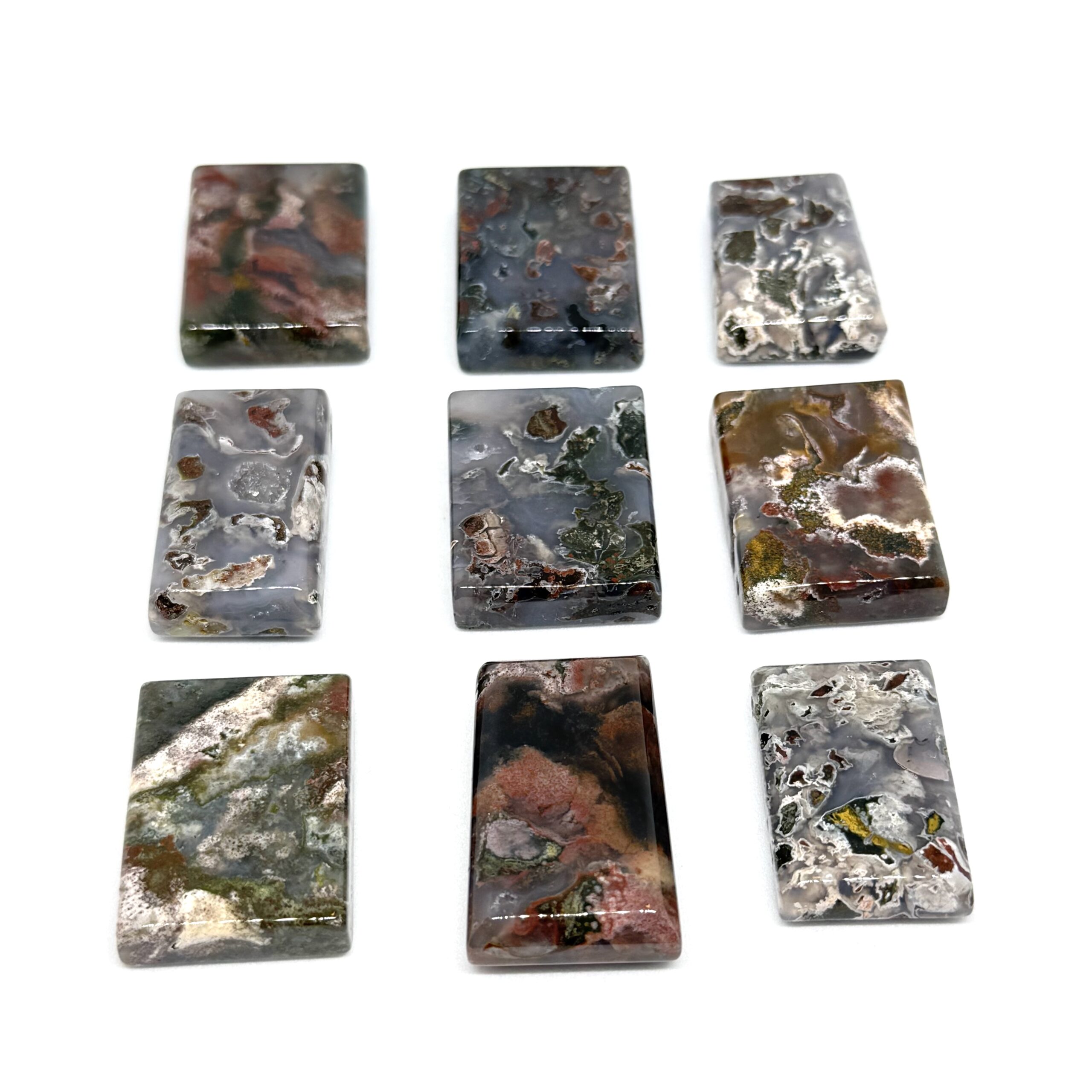 Fancy Moss Agate Rectangular Pendant Approx 25 x 20mm with 2mm Side Drill Hole 1pc