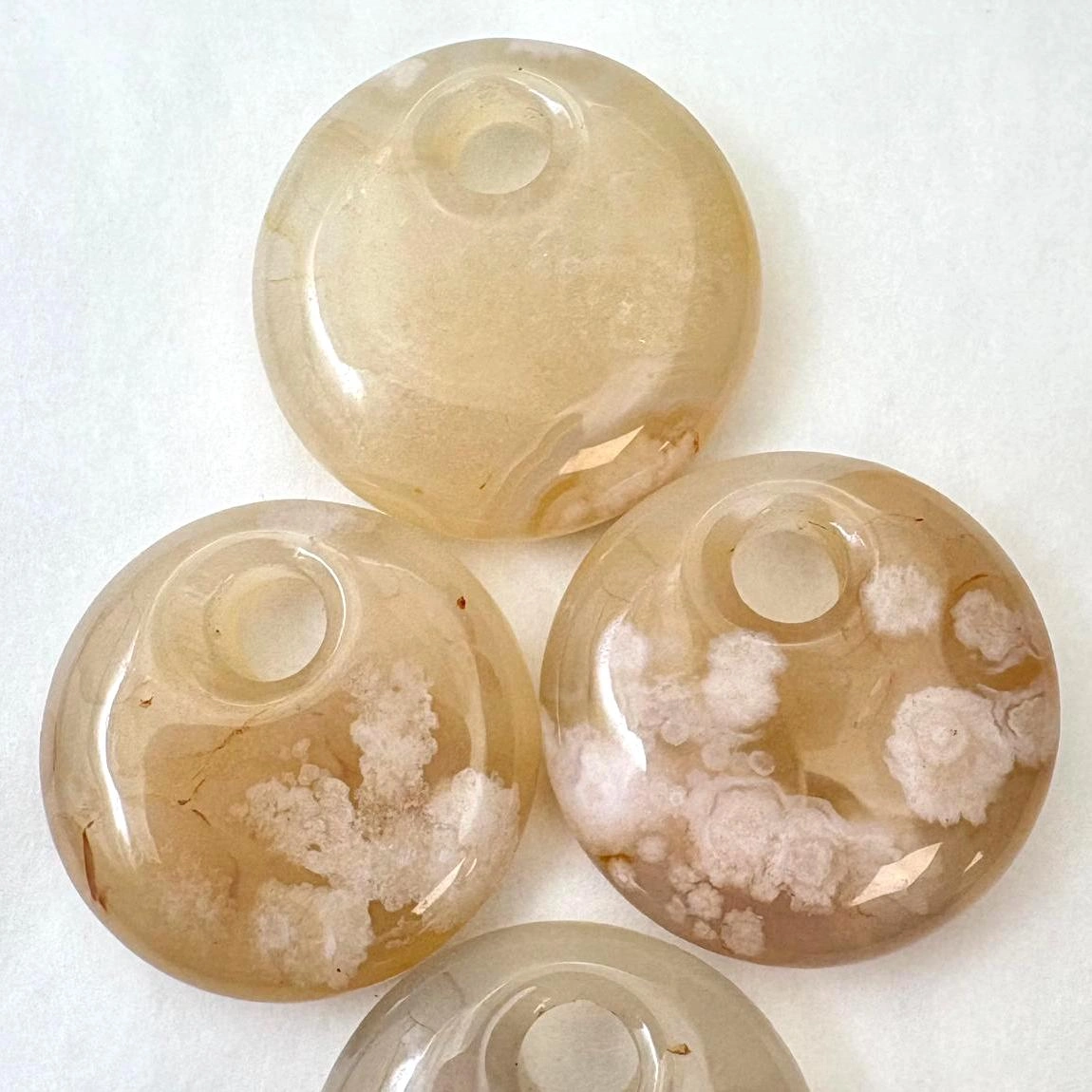 Each pendant showcases the gemstone’s natural floral-like patterns, giving it a unique and delicate appearance. The smooth, polished finish enhances the intricate colours and textures, making it perfect for a statement pendant or a central element in a custom design.