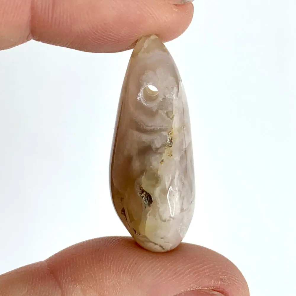 Flower Agate Drilled Tear Drop Approx 3.5 x 2cm with 2mm Drill Hole