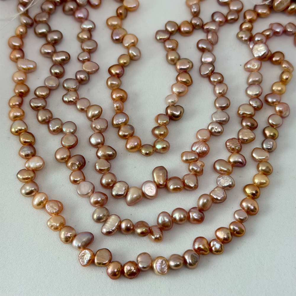 Fresh Water Cultured Peach Pearl Buttons Approx 3.5 – 4.5mm 32cm String