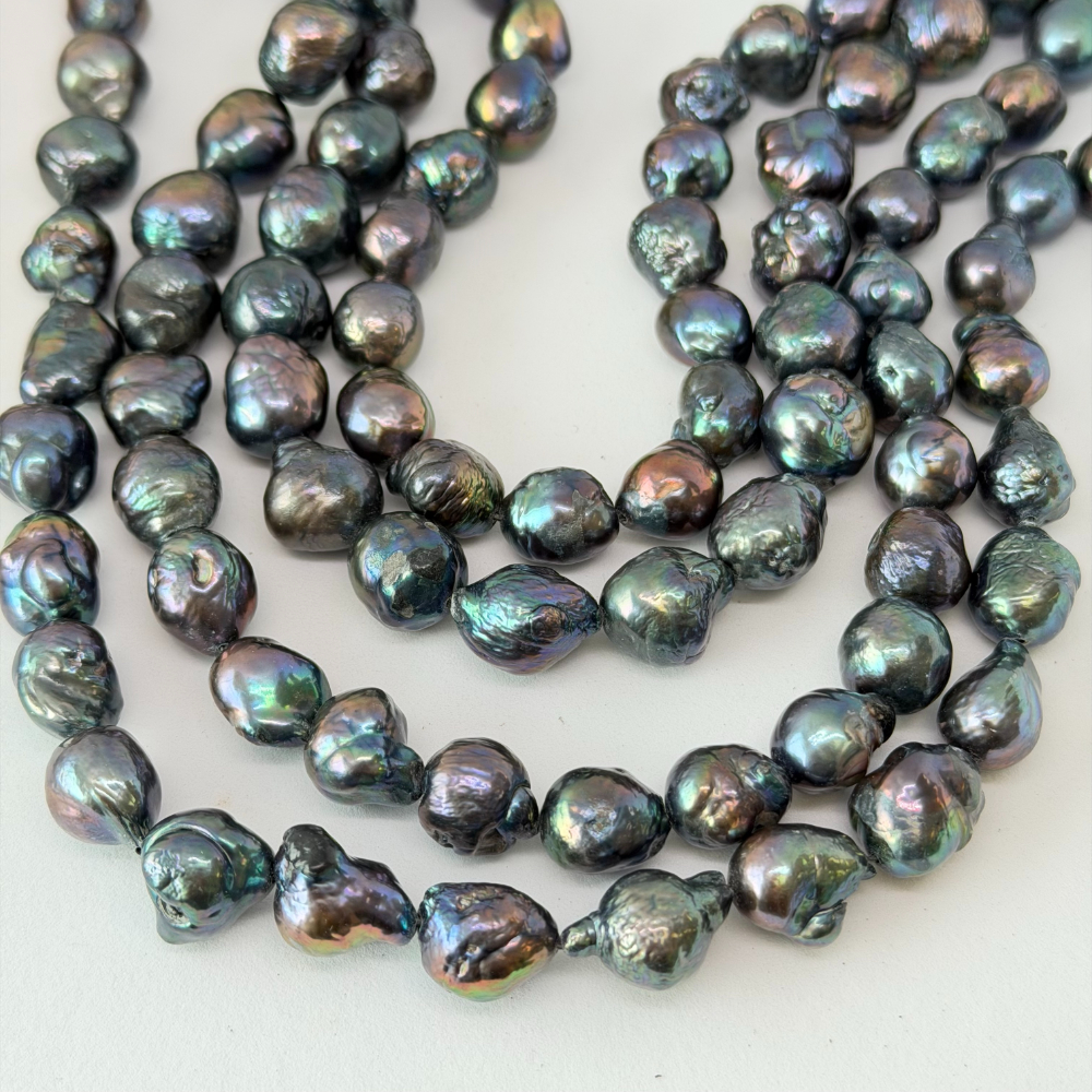 Fresh Water Cultured Peacock (dyed) Pearl Wrinkly Near Rounds Approx 9 – 10mm 32cm String