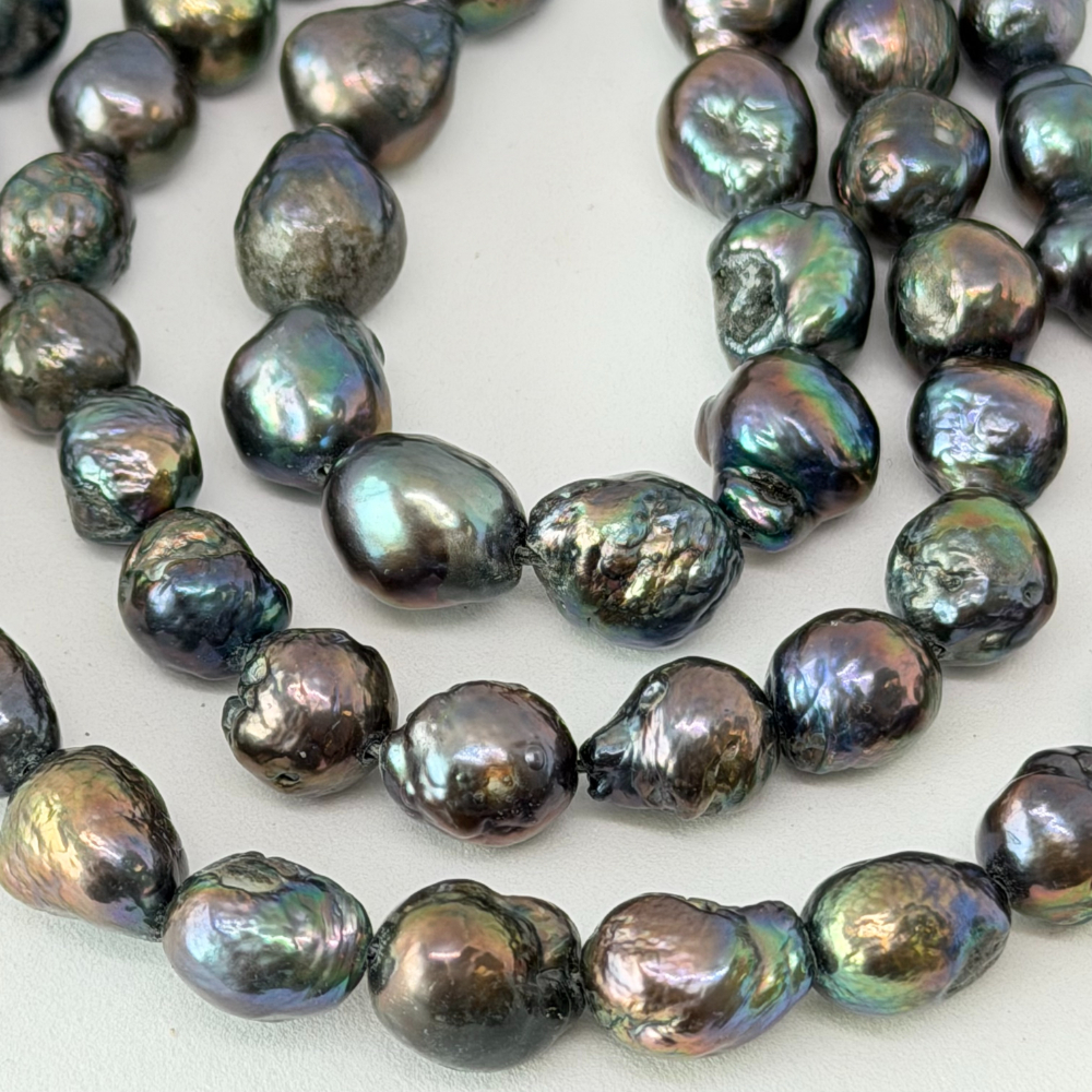Fresh Water Cultured Peacock (dyed) Pearl Wrinkly Near Rounds Approx 9-10mm 32cm String