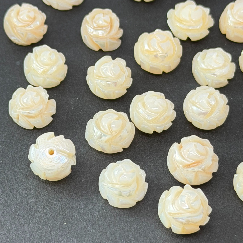 Fresh Water Cultured White Pearl Carved Flower Half Drilled Approx 8mm 1pc