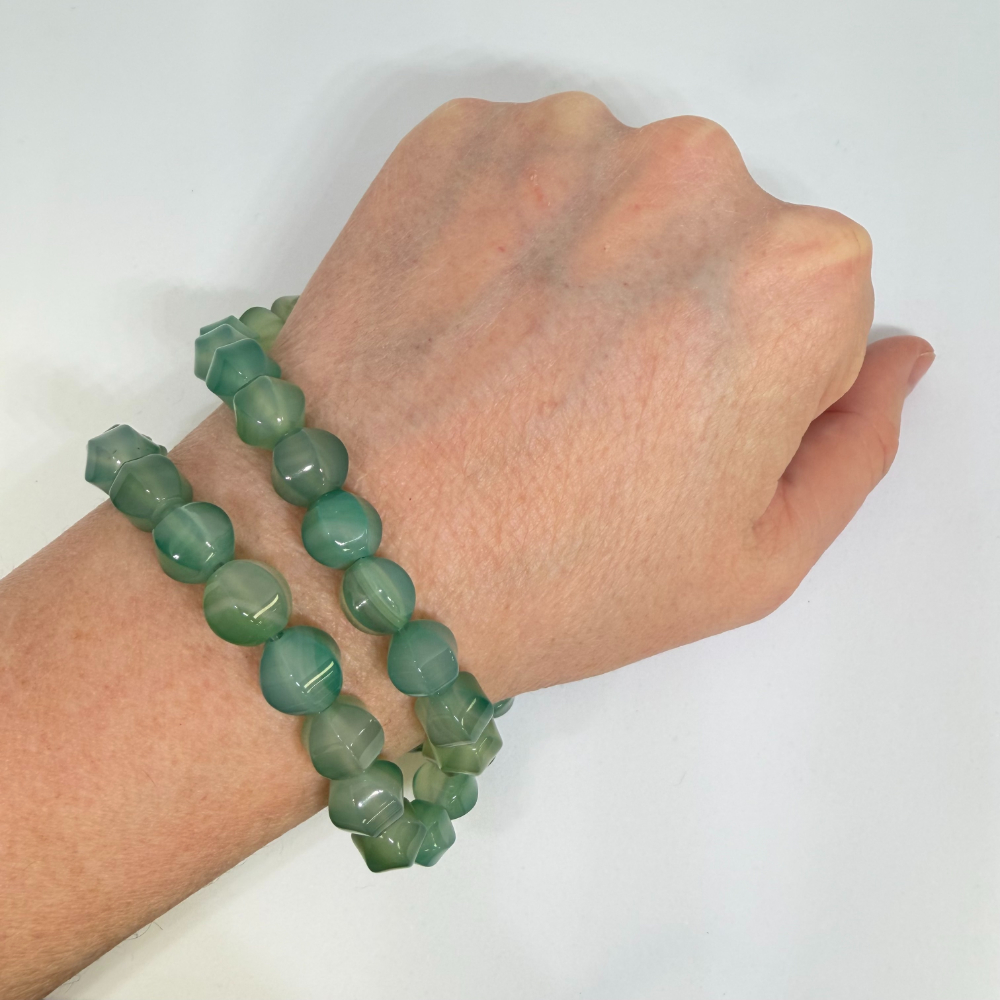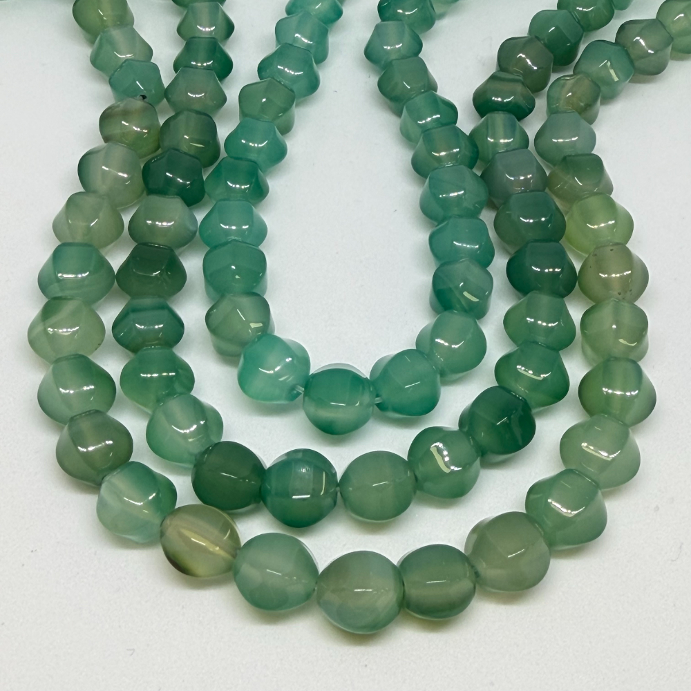 10mm Agate Green (dyed) Beads – Hexagonal Gemstone Strand (38cm)