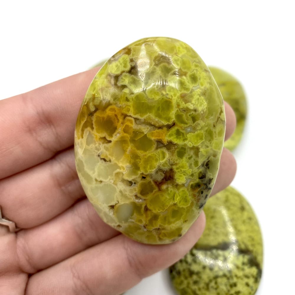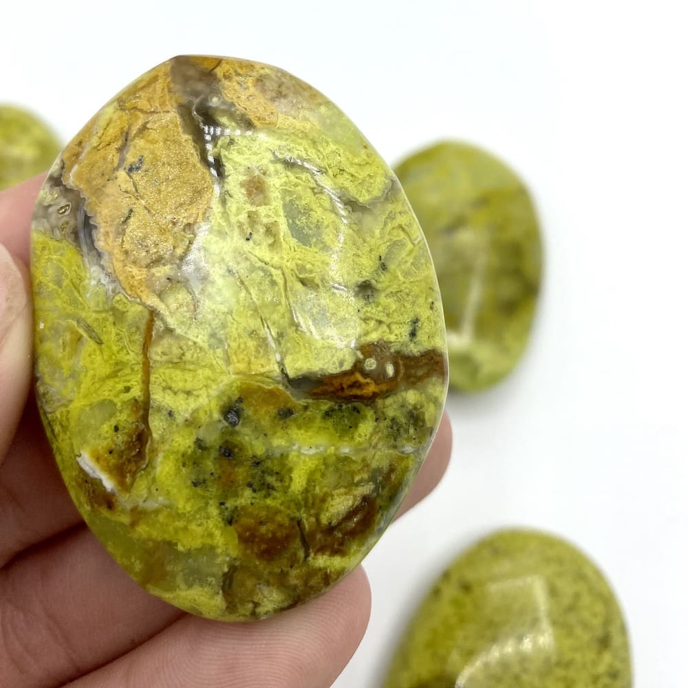 Our Green Opal Palmstones give the ultimate connection between Crystals and our being. Holding your Palmstone for a couple of moments can give us stillness and calmness. Carry your Palmstone with you in your pocket as a worry Stone, or use them in your Meditation work. Palm stones are one of the easiest ways to align your spirit with the energy attracted. It gives you a moment to calm the mind and tap into the healing vibrations of the earth.