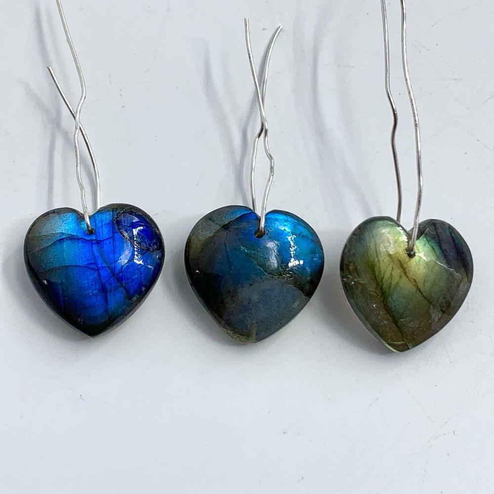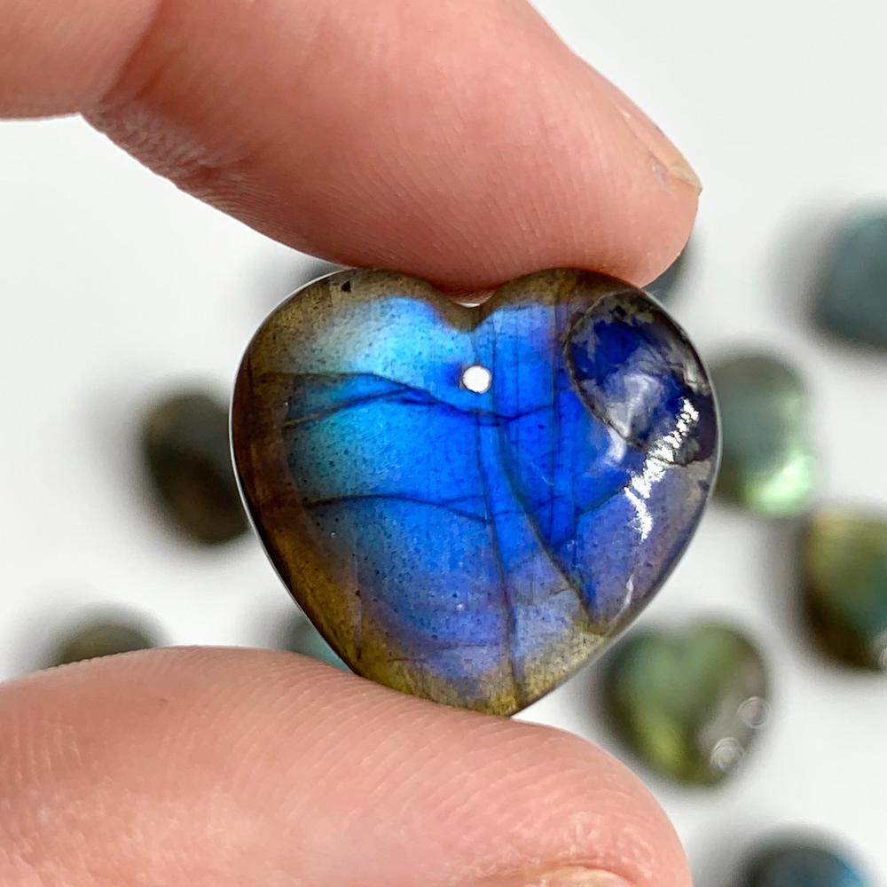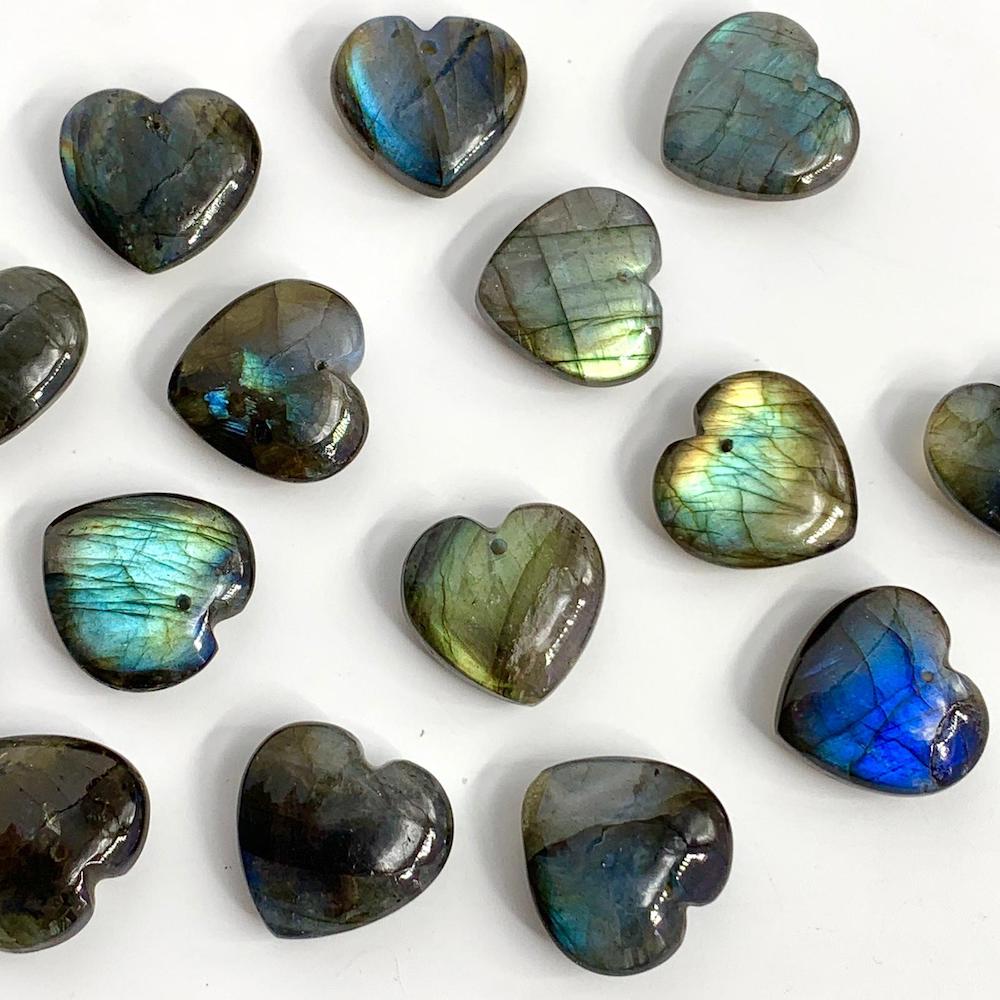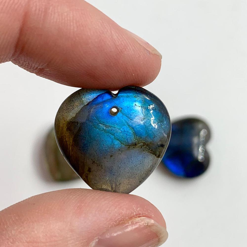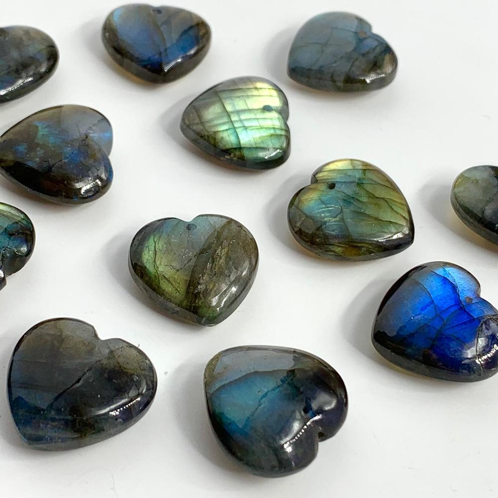 Our wonderful Labradorite Puffy Drilled Hearts are full of blue, with a striking flash in each Heart. With a deliberate 0.6mm drill hole in the top so you can make stunning pieces with them or they can be accessorised with other Gemstones. We know your Jewellery Makes are going to be outstanding with these Hearts.