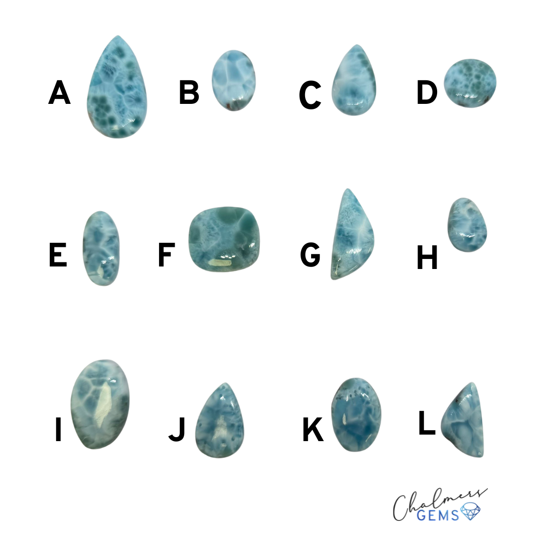 These Larimar Cabochons come in a variety of sizes and shapes, allowing you to handpick your favourites. Each piece is undrilled, making them ideal for creating unique gold or silver jewellery designs.