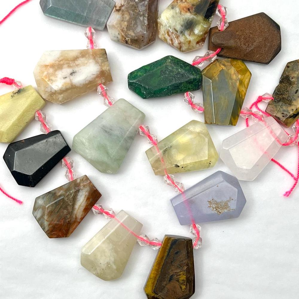 Mixed Gemstone Faceted Trapezoid Shape Approx 20 x 25mm – 21 x 28mm Focals 40cm Strand with spacer beads SECONDS