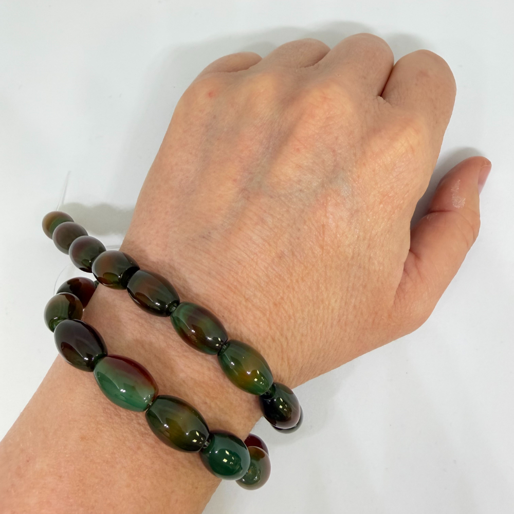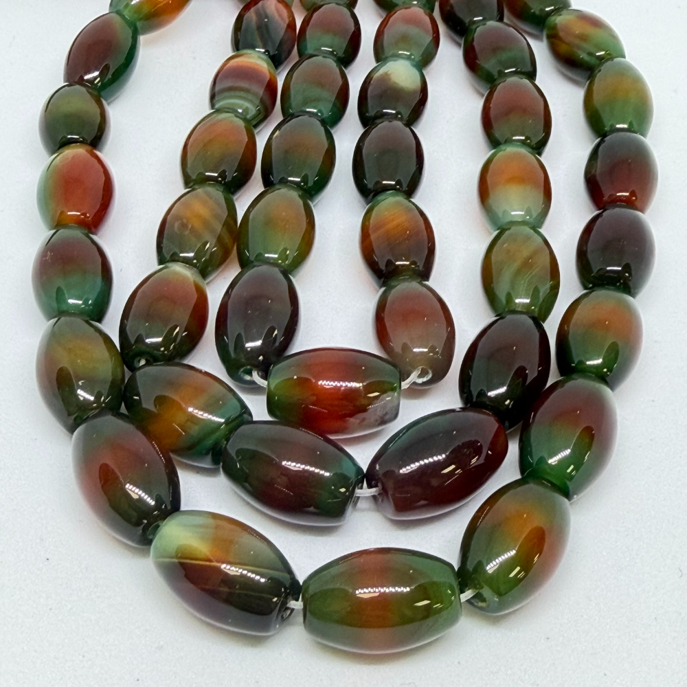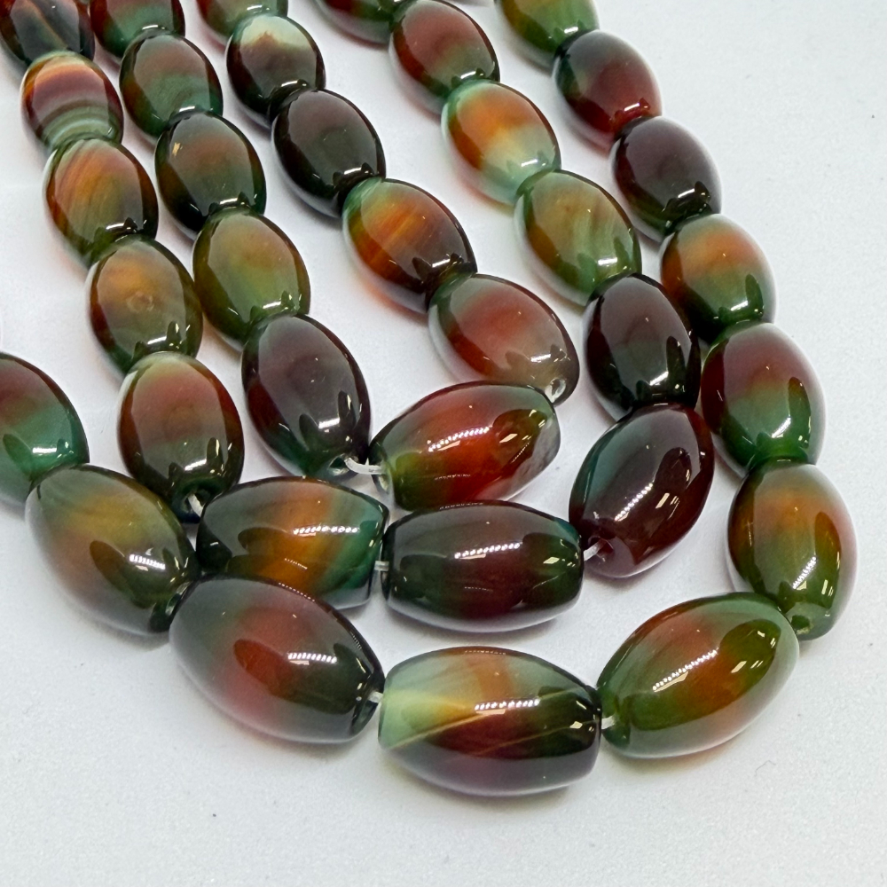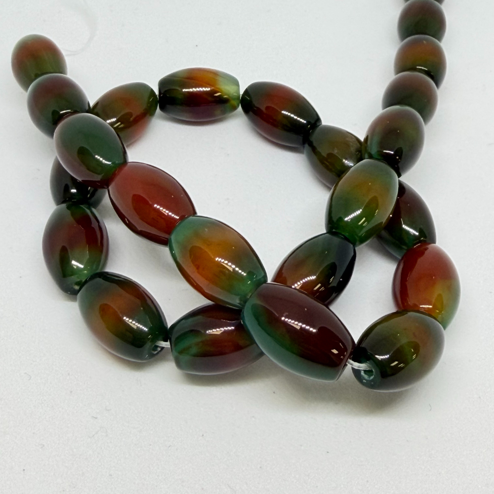 10 x 15mm Agate Mixed Green & Coffee ( dyed) Beads – Smooth Rice Shape Gemstone Strand (38cm)