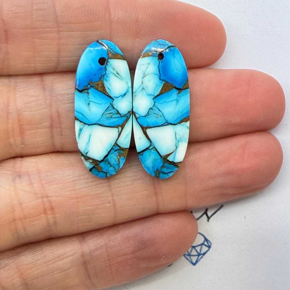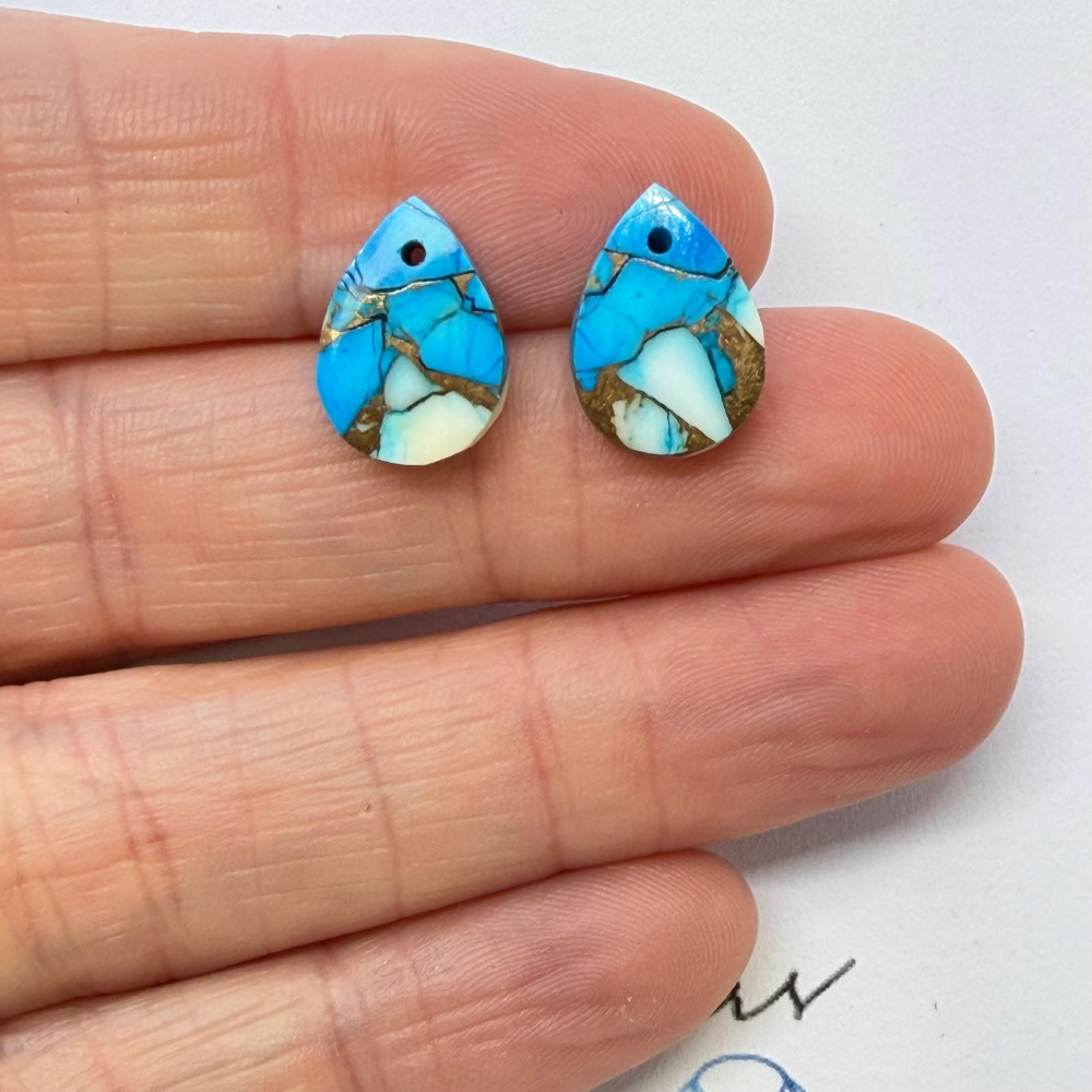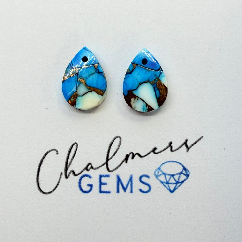 Mohave Ice Blue (dyed & reconstructed) Mixed Shape Cabochons Approx 10 -25mm Drilled Pair