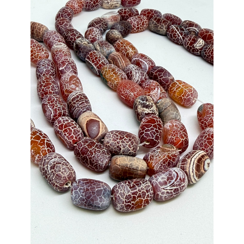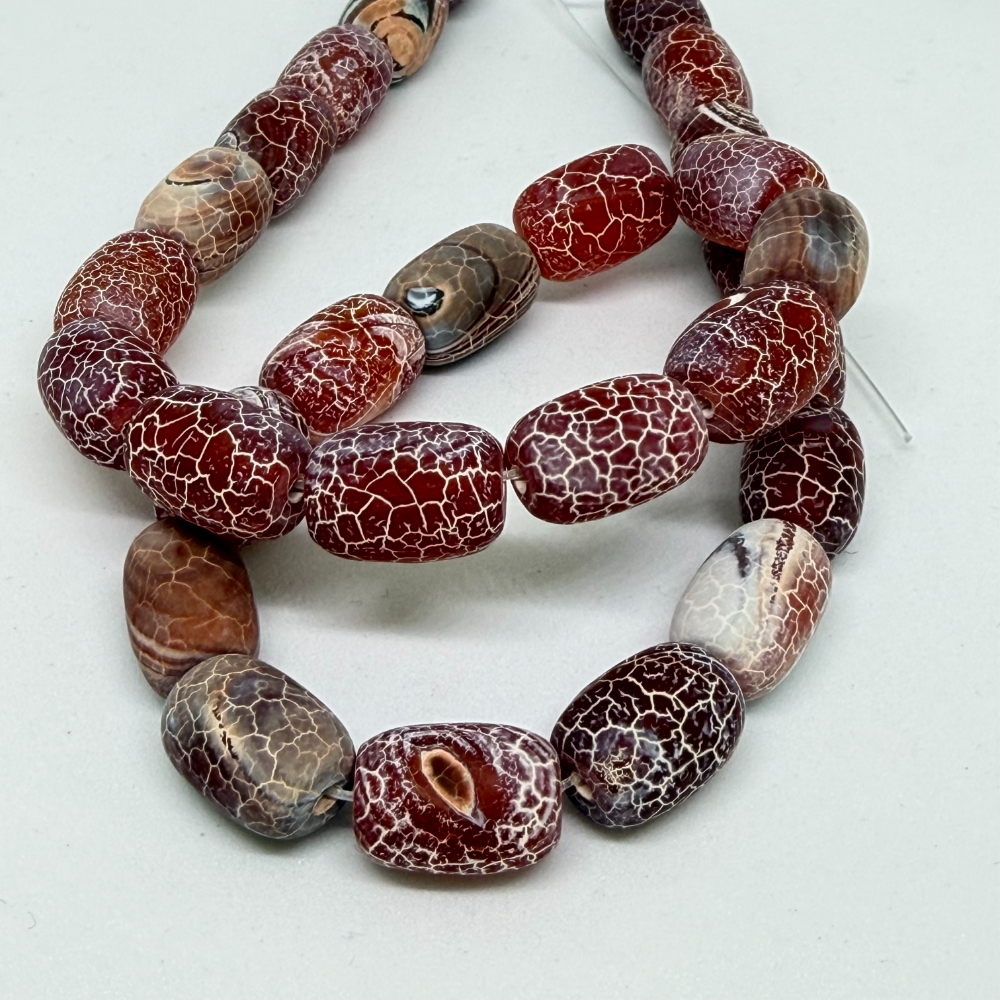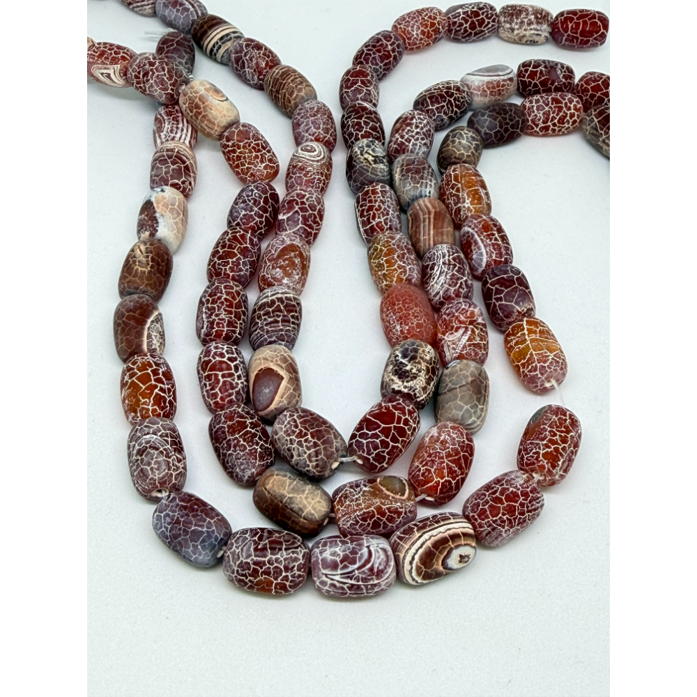Mottled Red (dyed) Agate Matt Drum Beads Approx 10 x 14mm 38cm Strand