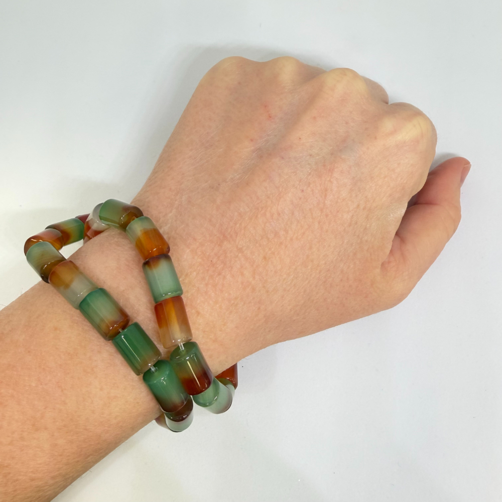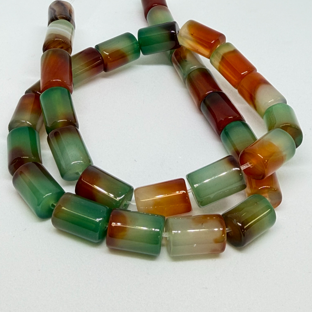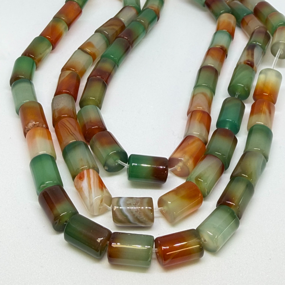 8 x 20mm Agate Multi Green (dyed) Stripe Beads – Cylinder Gemstone Strand (38cm)