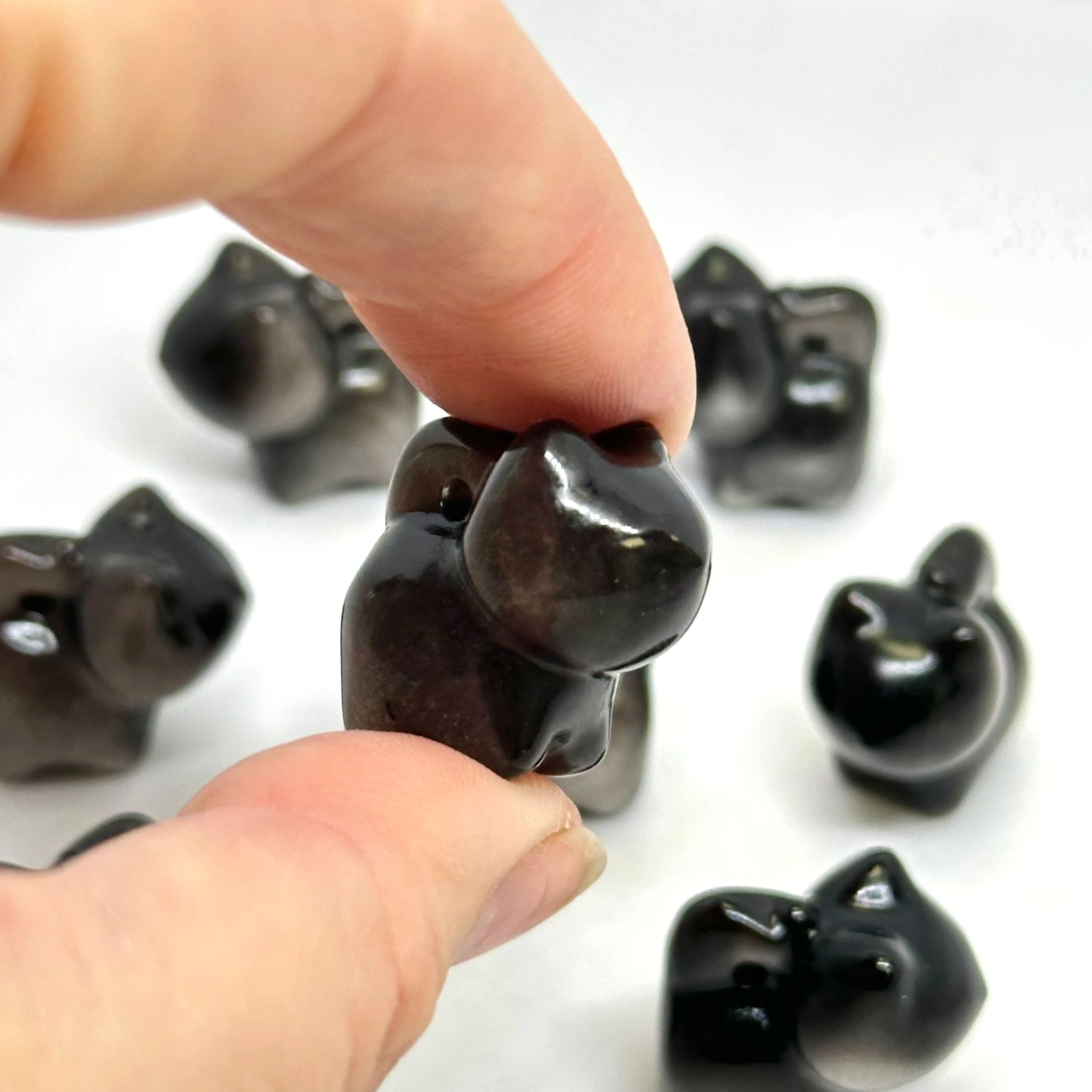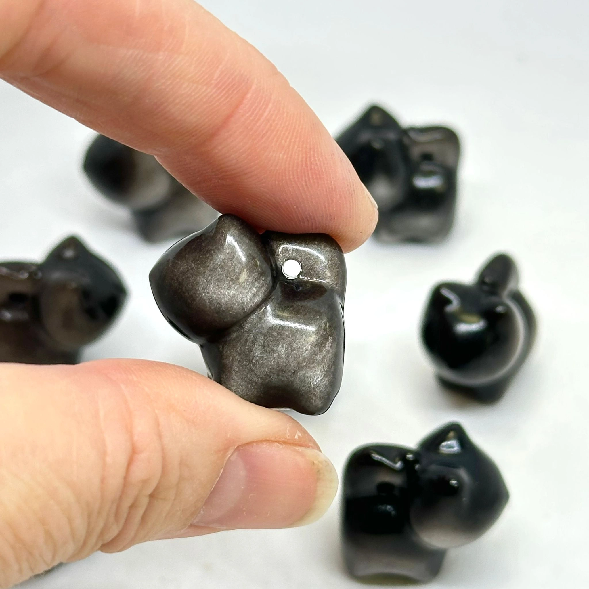 Obsidian Carved Cat Bead Approx 23mm 1pc