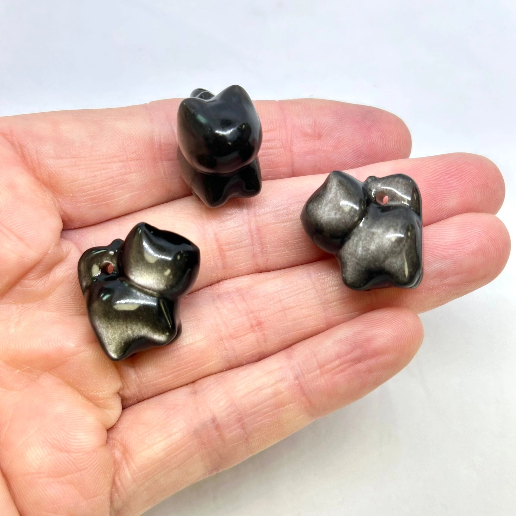 This beautifully carved Obsidian Cat Bead is a striking addition to any jewellery design or collection. Measuring approximately 23mm, each bead has been shaped with care to highlight the glossy, deep-black finish that Obsidian is known for.