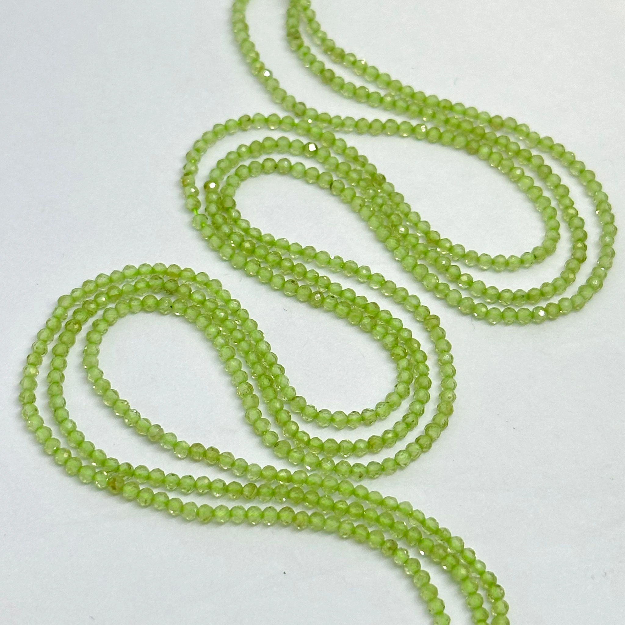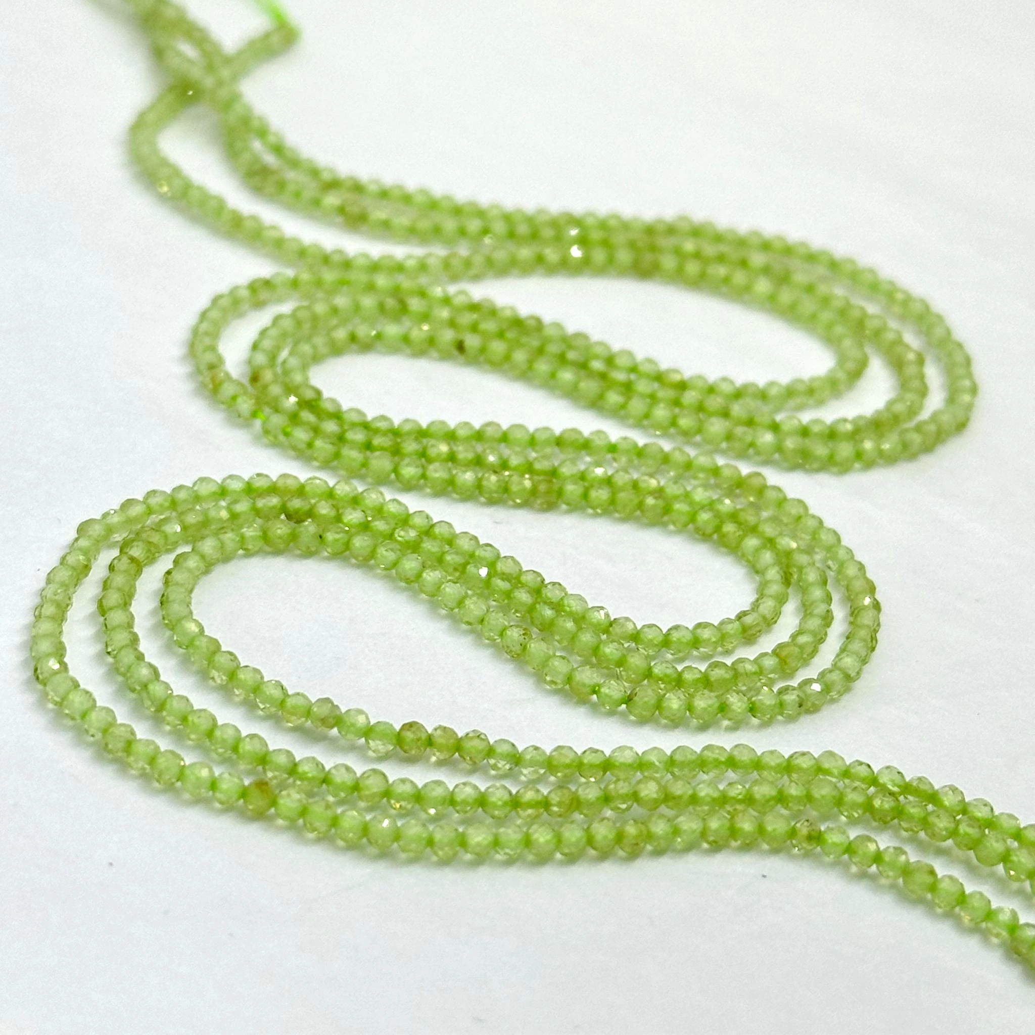These micro faceted Peridot Beads measure approximately 2mm and are strung on a full 38cm strand, making them ideal for detailed jewellery designs.