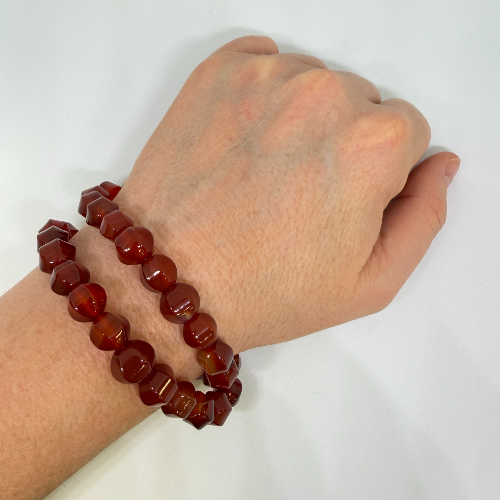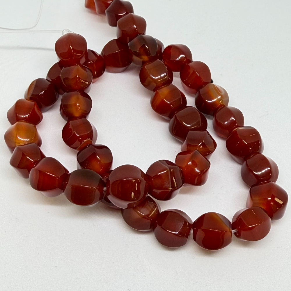 10mm Agate Red (dyed) Beads – Hexagonal Gemstone Strand (38cm)