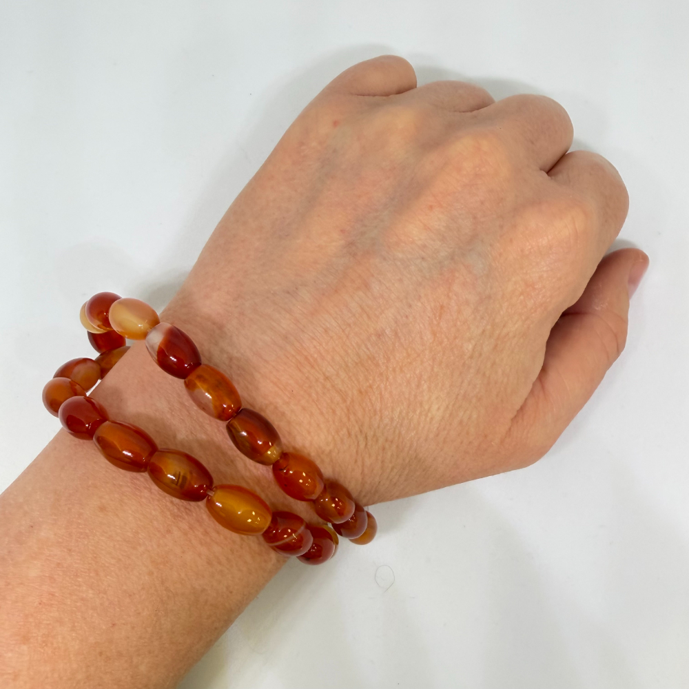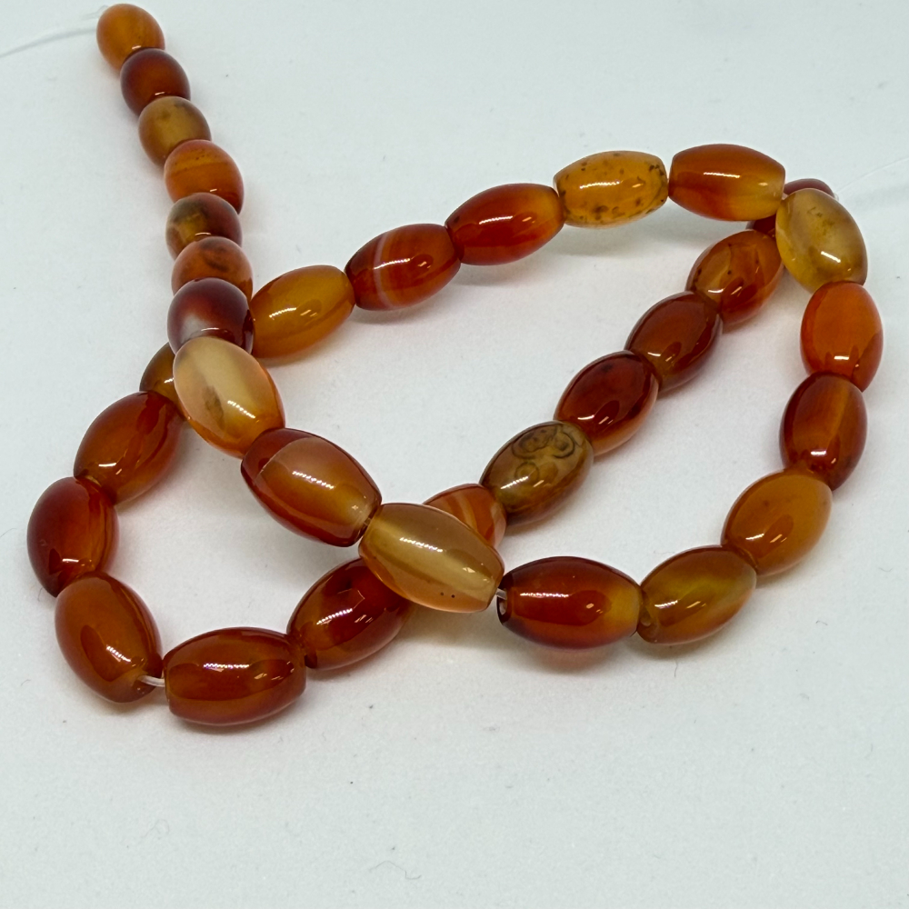 Red Striped ( dyed) Agate Smooth Rice Beads Approx 8 x 12mm 38cm Strand