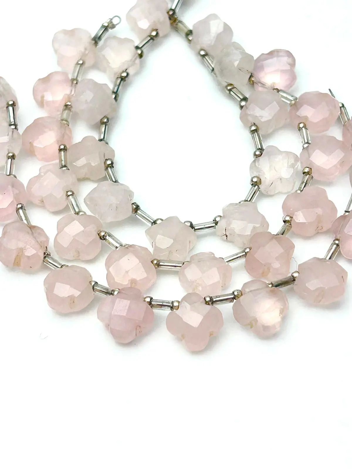 We have worked very closely and diligently with our Master Cutter at our cutting facility in Jaipur to bring you these phenomenal Rose Quartz Faceted Clovers.