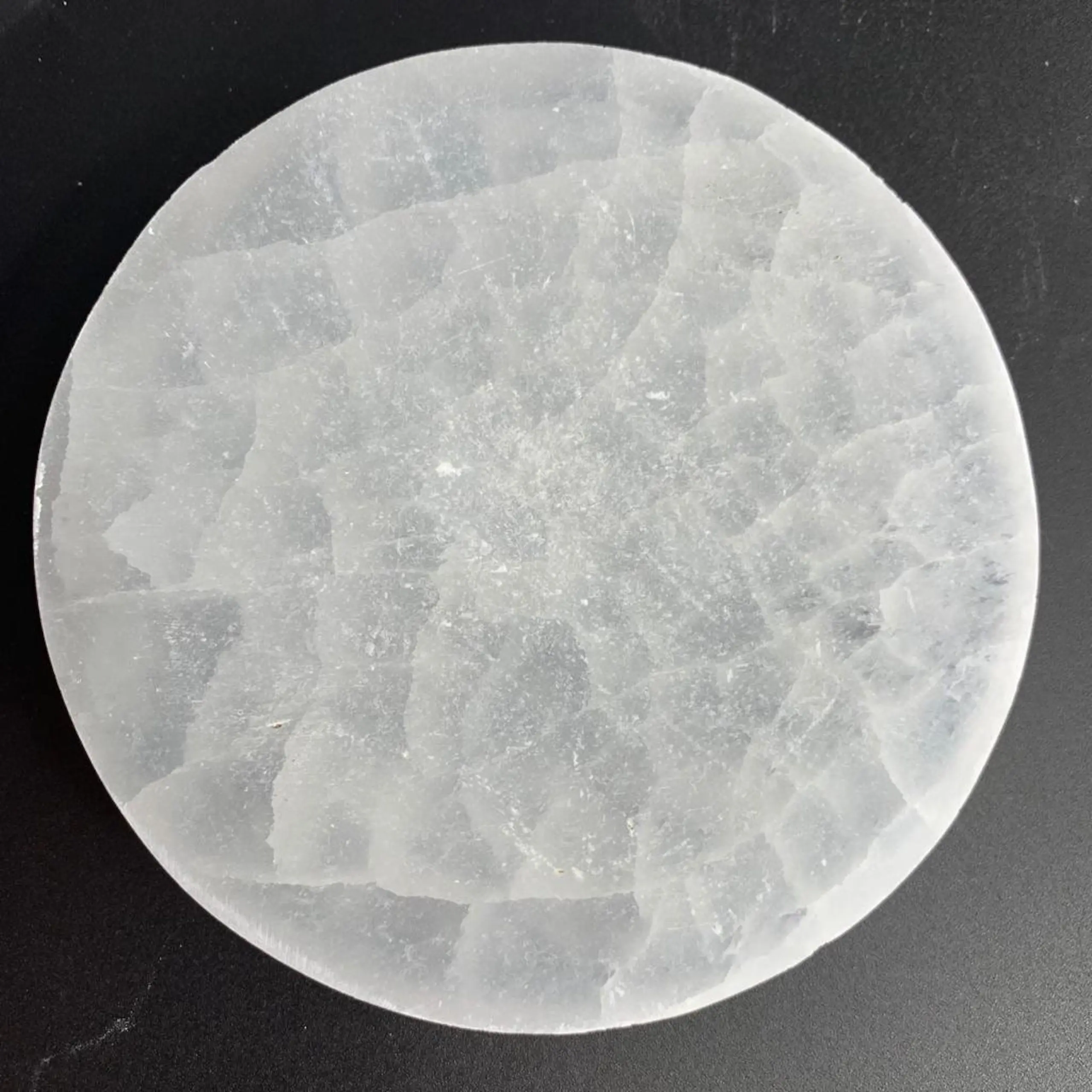 Amplify your Crystal Collection’s powers with this stunning Selenite Flat Circle Plate with Zodiac Etching