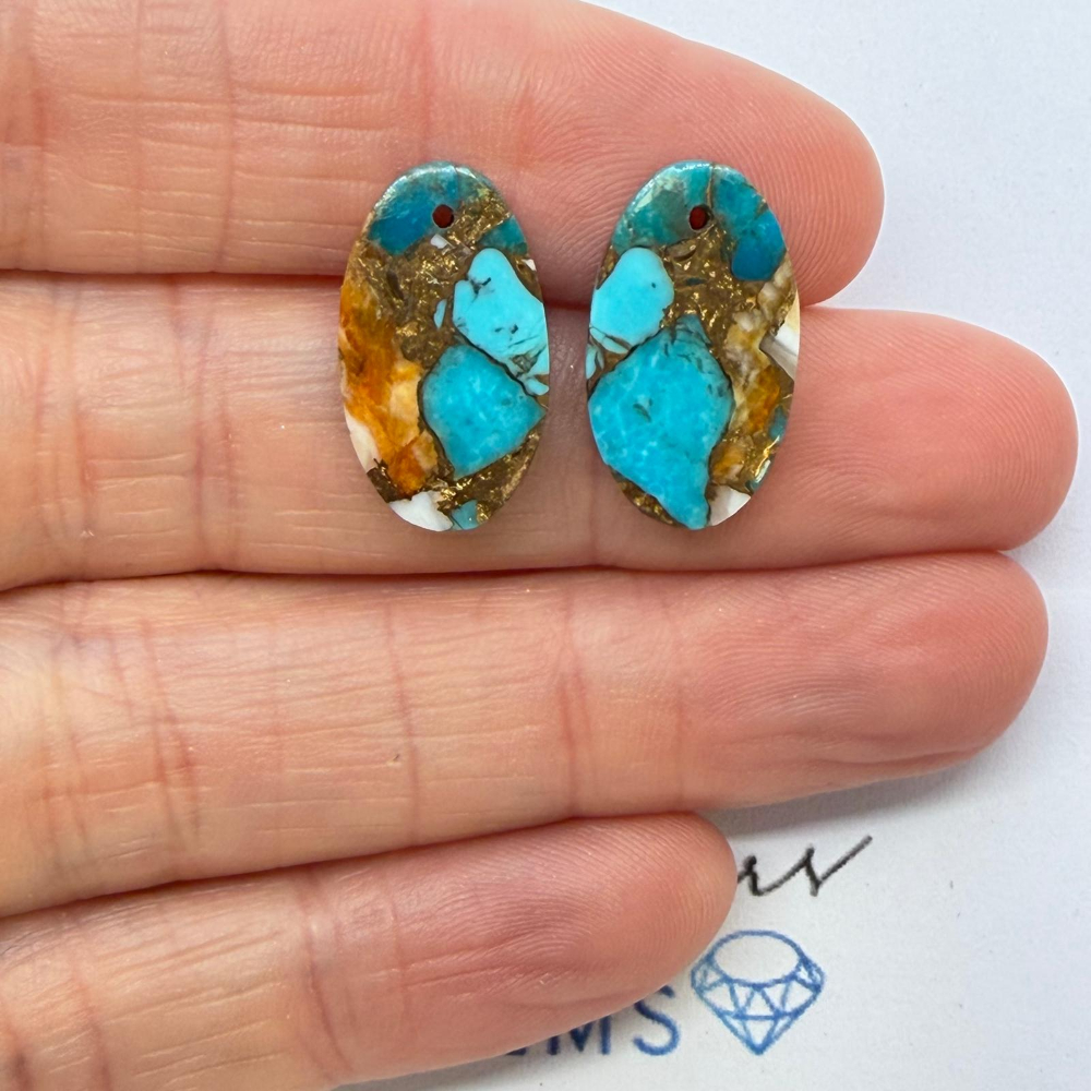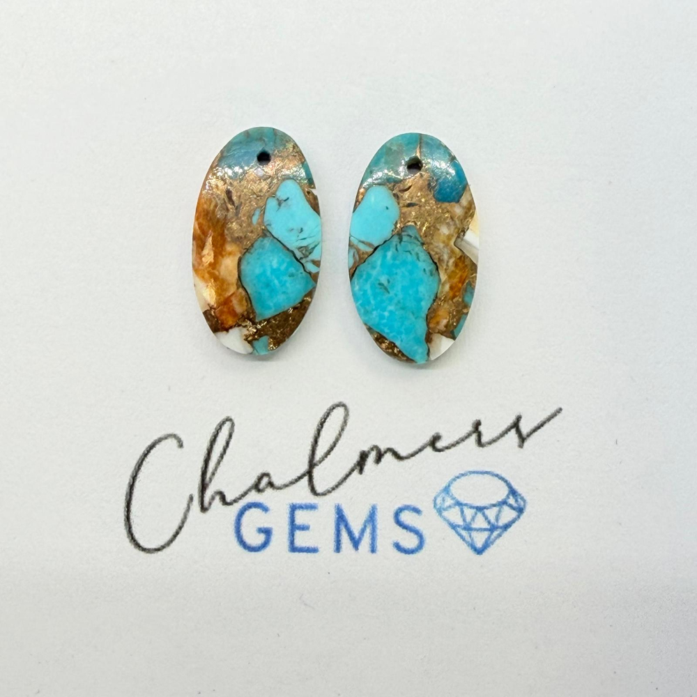 Spiny Oyster Mohave (reconstructed) Mixed Shape Cabochons Approx 15 -25mm Drilled Pair