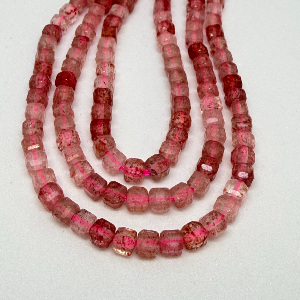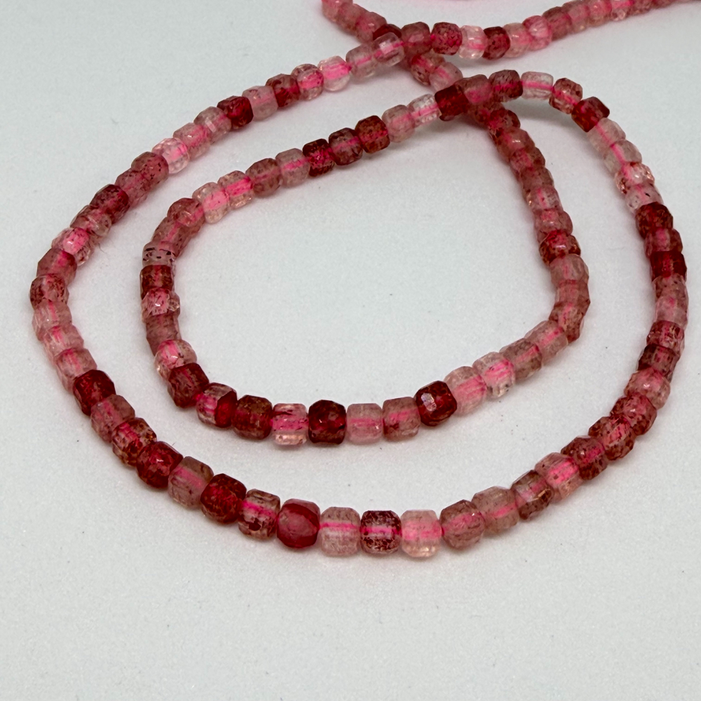 3 x 3mm Strawberry Quartz Beads – Faceted Cube Gemstone Strand (38cm)