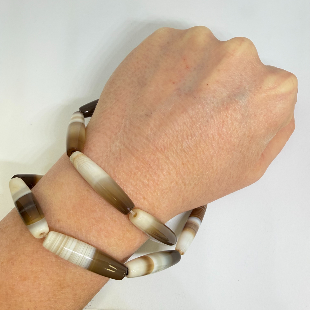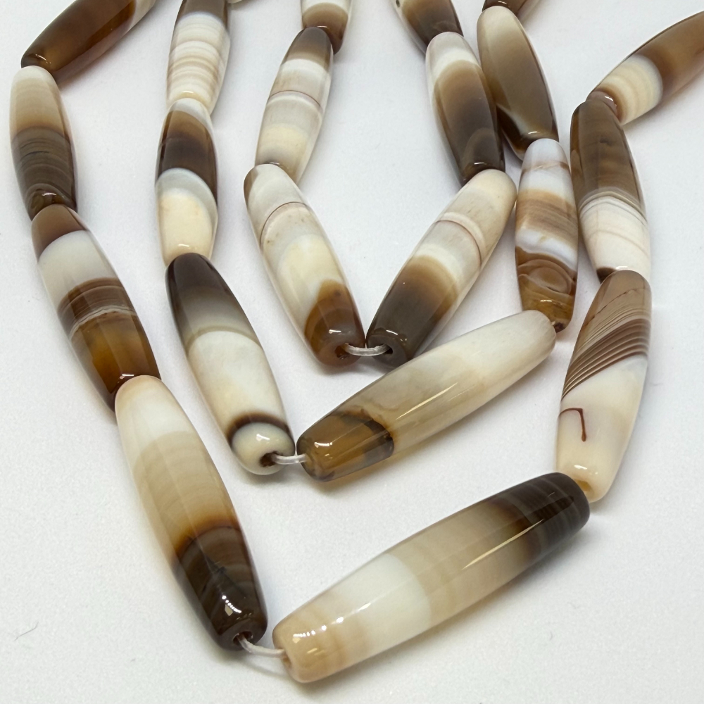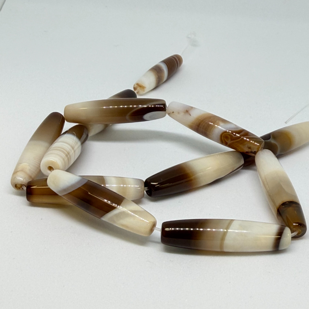 8 x 33mm Agate Striped (dyed) Beads – Rice Shape Gemstone Strand (38cm)