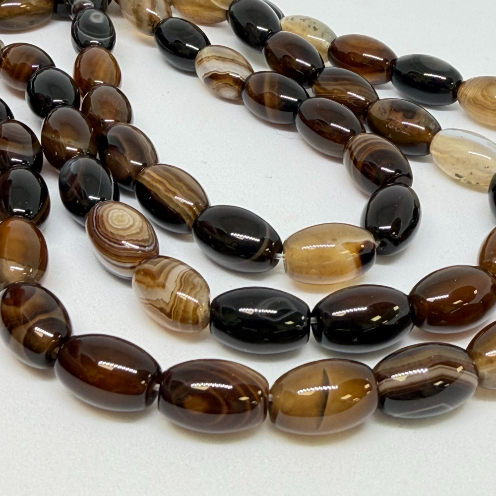 Striped (dyed) Agate Smooth Drum Beads Approx 10 x 15mm 38cm Strand