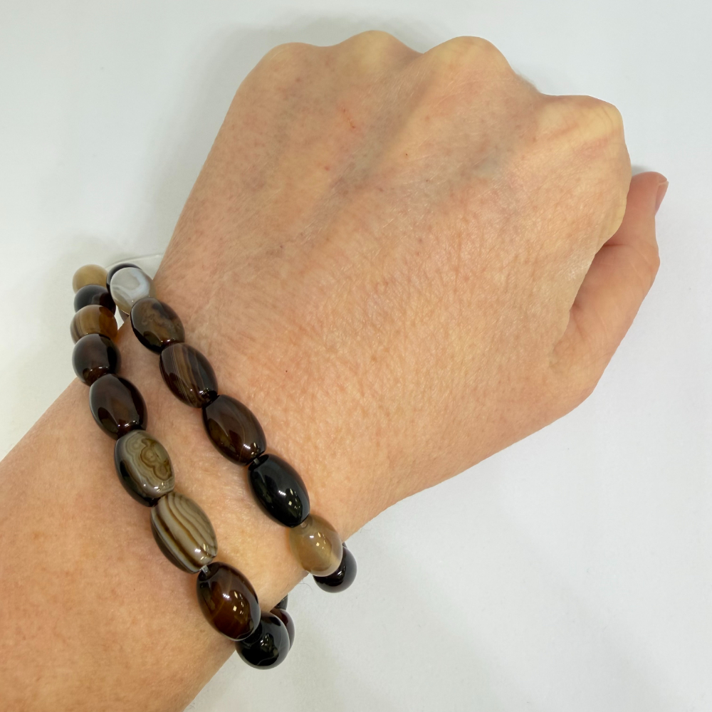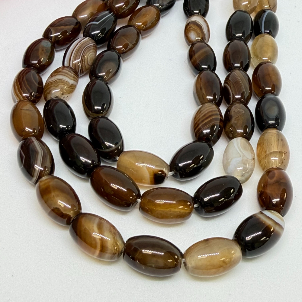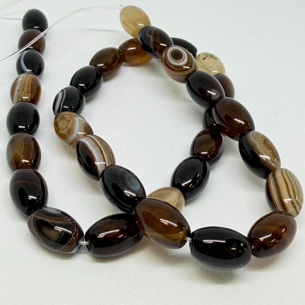 10 x15mm Agate Striped (dyed) Beads – Smooth Drum Gemstone Strand (38cm)