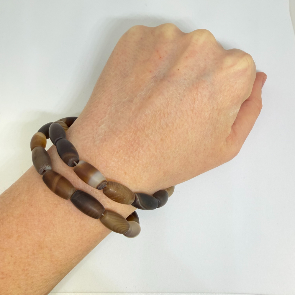 8 x 16mm Agate Striped (dyed) Beads – Smooth Drum Gemstone Strand (38cm)