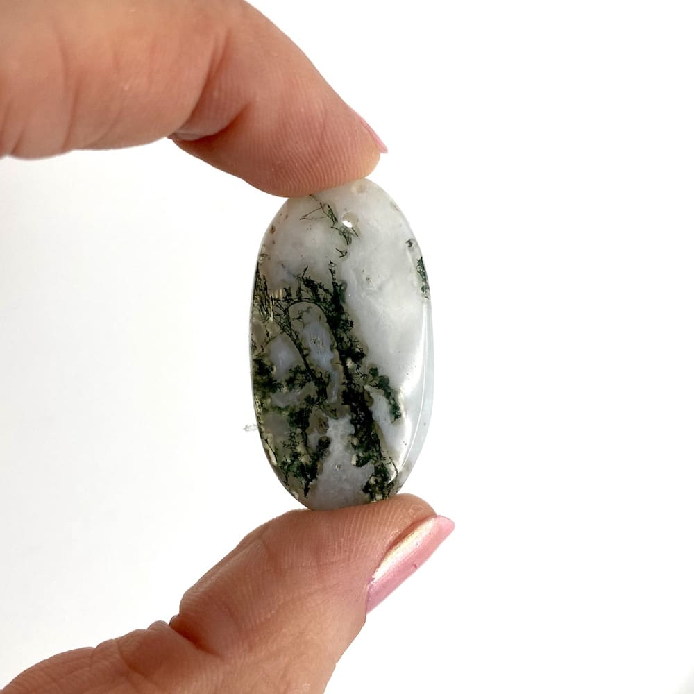 Agate Gemstones, in general, are believed to have quiet energy associated with the Heart Chakra, and Tree Agate is no different. Nurturing and protecting it helps support inner peace and welcome and give love.