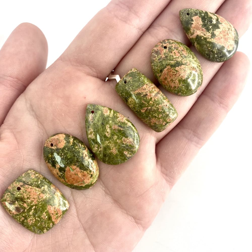 Our Unakite Cabochons come in all different shapes and sizes