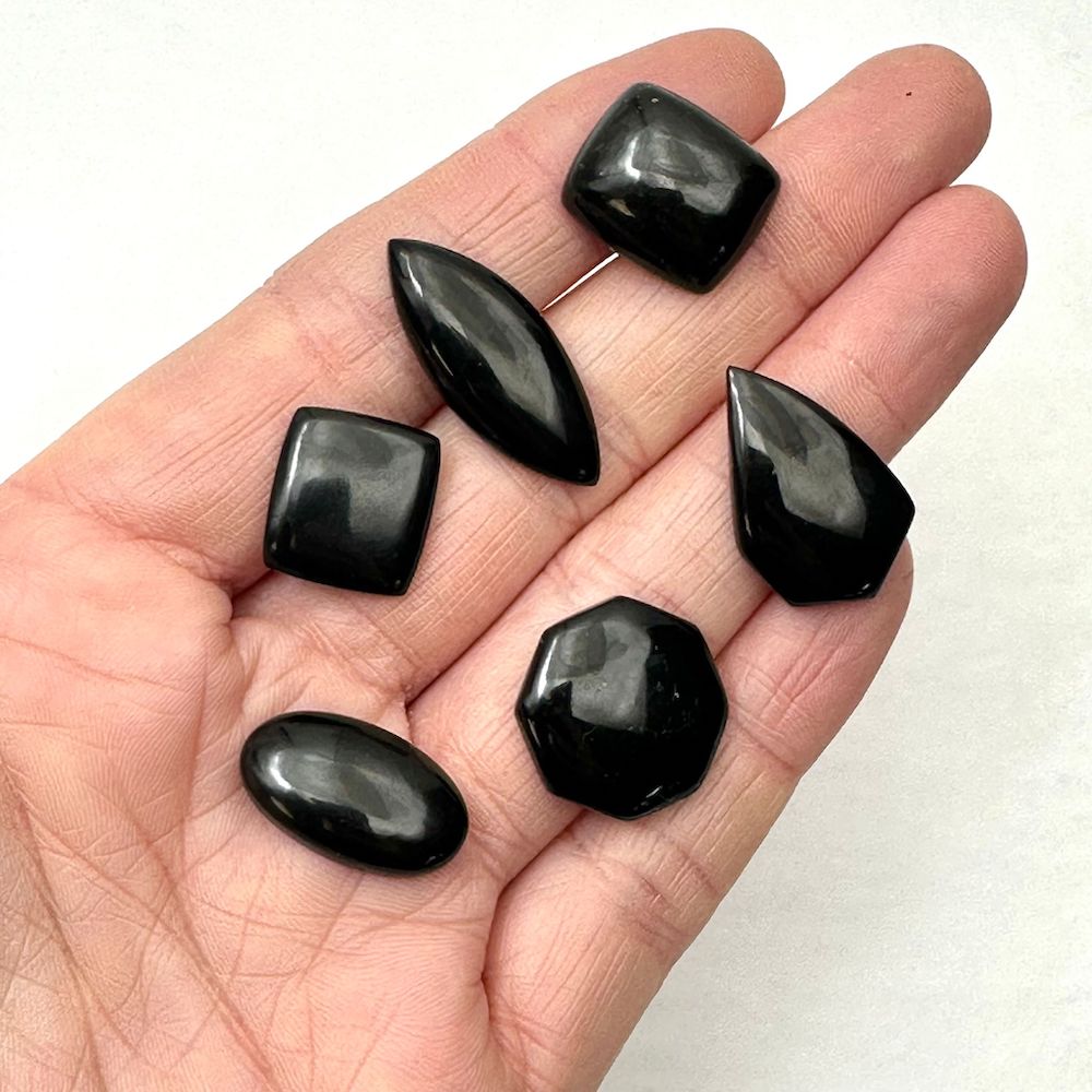 We have had these fabulous Whitby Jet Cabochons cut just for you! We have a variety of different shapes, if you have any specific requests please leave it in the ‘notes’ section when you check out!